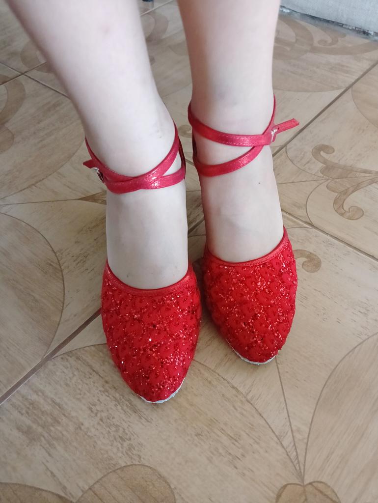 The shoes look very nice. My daughter's foot length is 24.5 - 25 cm. They fit well, her foot is a bit wide. I'm buying dancing shoes for the third time, but for the first time with a closed toe. We are very pleased, thank you very much.