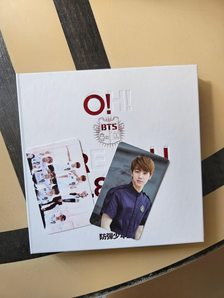 It arrived ahead of time. Bring the CD with the photobook, the poster, the 2 photocards and as a gift a fanmade photocard of Jin and a protector
