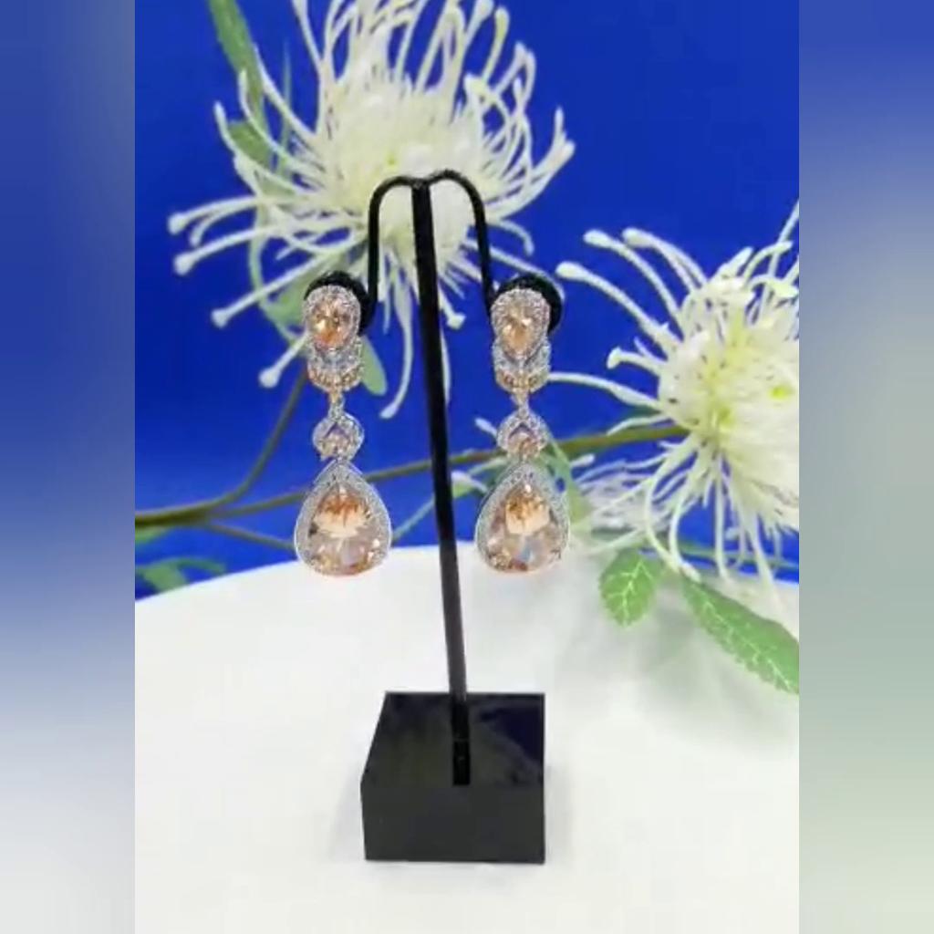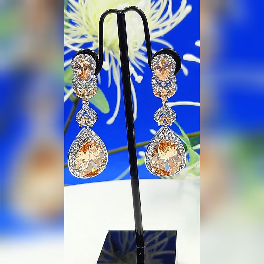 CMM White Golden Color Long Water Drop Cubic Zirconia Dangle Earrings Party Wedding Jewelry for Brides