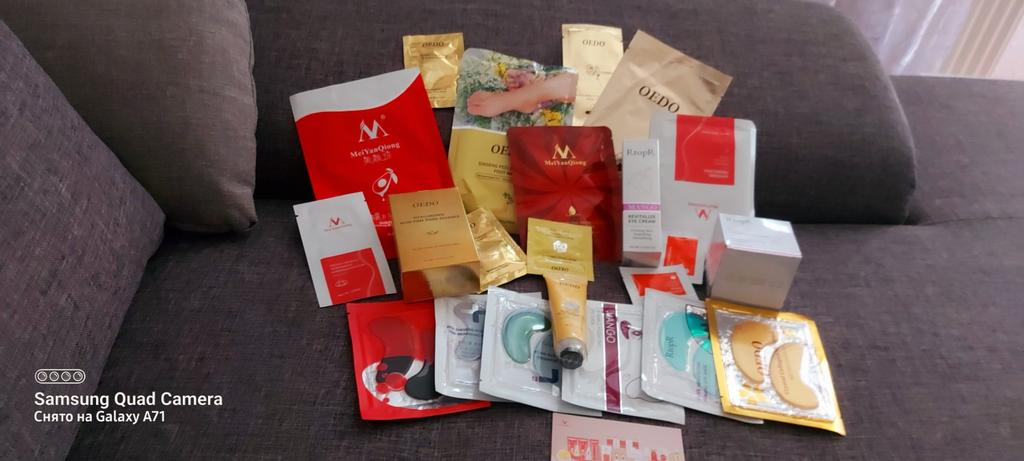 Tried the hand cream and love it do far. Left my hands very soft. Loved the light fresh smell. Used the Fair King Red Ginseng Nourishing and Repairing Eye Mask. Enjoyed the experience, you leave them on for 15-20 minutes. It leaves the under eye area so cool and refreshed. There is also a lot of serum in the packet that can be used to pay around the eye. Used the MeiYabQiong Collagen Black Pearl Eye Mask. A bit tingling but very refreshing. Generous amount of serum in the packet. The foot mask was very nice. The socks were easy to use and comfortable. The ginseng was nice and fresh. The feet were left soft and hydrated.