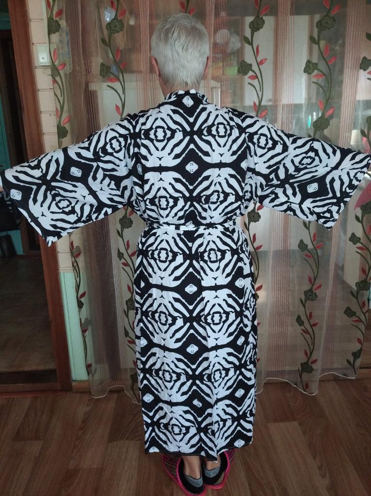 I am delighted with the cut and material of the cape. Stylish, suitable for a cape on the beach 🌴 and at home as a dressing gown
