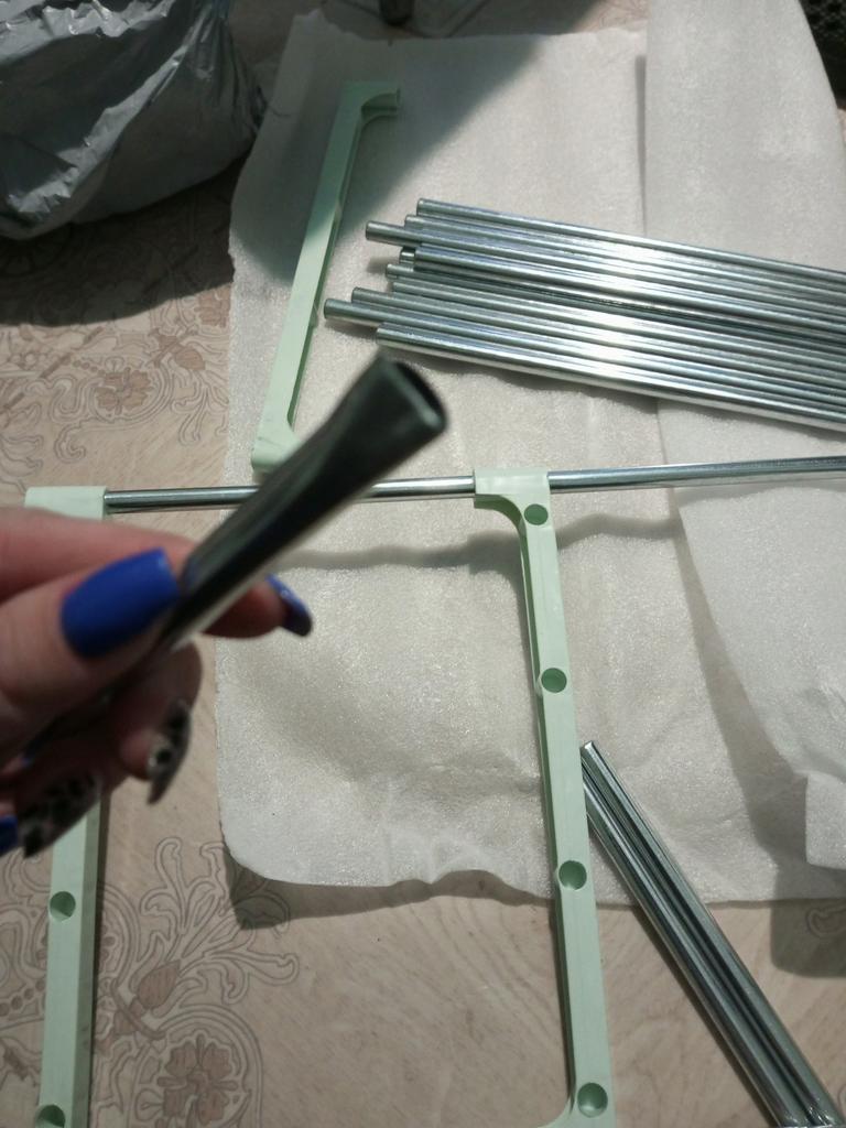 I assembled it quickly! Everything is fine! Thank you! The stand is soft and airy! No need to put weights down!! Summer shoes will do!!! Beautiful!