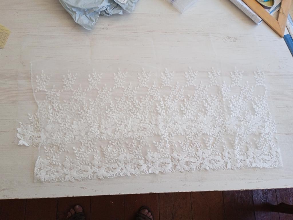 The lace on the mesh is very beautiful. Size 2 meters, width 29 cm instead of 32 cm. When sewing, 3 cm means a lot. Not reliable information.