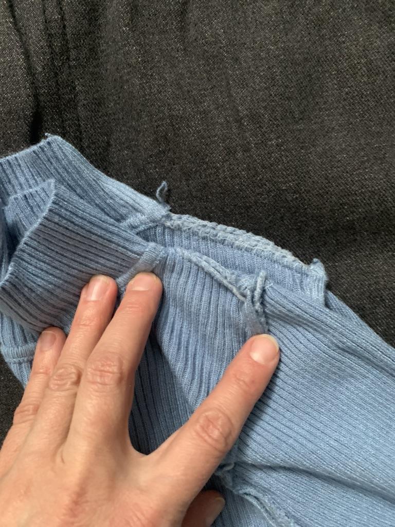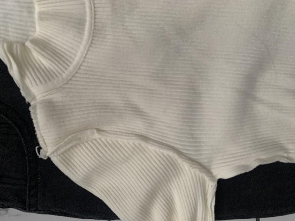 There was an unpleasant smell when I received it, and there was a yellow stain on the sweater, but I think it will wash out.