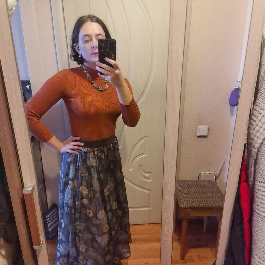 The size fits perfectly for a bust of 84 cm. The material is pleasant to the touch. Color as in the photo. I recommend.