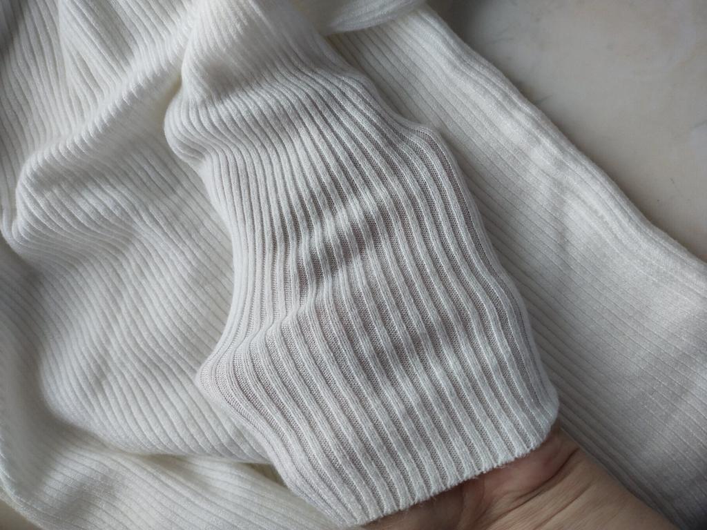 If you are taller than 1.60 m - the sleeves will be a bit short for you. The color is not white, but ivory - quite beautiful. It washes well and is very pleasant to the touch.
