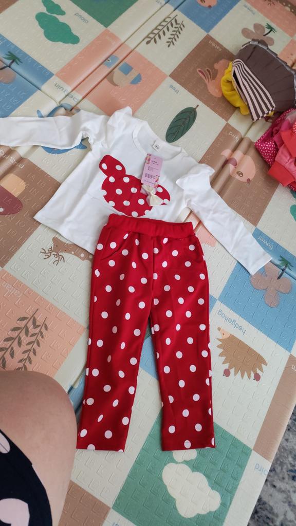 I ordered size 90 for my daughter, we are currently wearing 80. When I ordered, I thought it would run small, but the suit arrived exactly size 90. We will wear it next spring. The suit is thin for spring or cool summer evenings, I am satisfied with the quality. Just like in the picture, the print is intact, the color is saturated