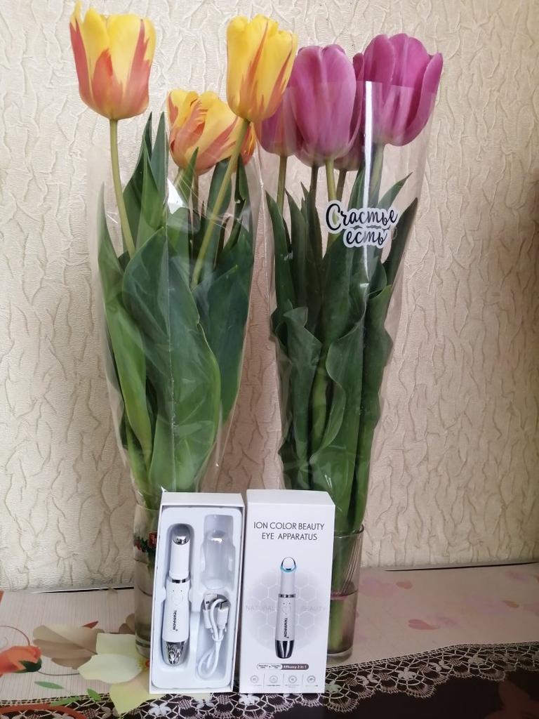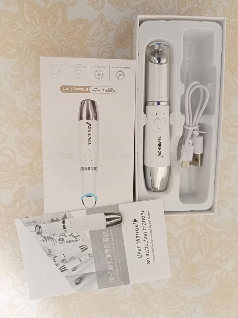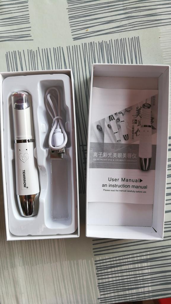 Delivery was quite fast. 4* for the fact that the place for the cosmetic product turned out to be empty. A gift in the form of hair bands is simply unnecessary. In the box there was an instruction that explains everything thoroughly. Special thanks for her. The device itself was discharged, but fully charged quickly, within an hour. I have been using it for the third day and it still does not need charging. Both the cold blue and warm red modes work. After the first application, there was a strange sensation in the lips, that is, the muscles received an impulse and it turned out that they were the same. 🙂 There are no such feelings in the future. Of course, there is no result in terms of rejuvenation either. I use the device for cosmetics that I buy in DM. In general, I thank the seller and recommend this device even because it is more pleasant to apply serum and cream around the eyes than with fingers. But I also count on the cosmetic result. I am supplementing the review. VERY IMPORTANT INFORMATION!!! If someone has a vascular network on their face, then the use of this device is contraindicated. I had such a problem, I eliminated it with a laser. But when she used this device for a week, a vascular network appeared in the places of application. I am desperate and disappointed.