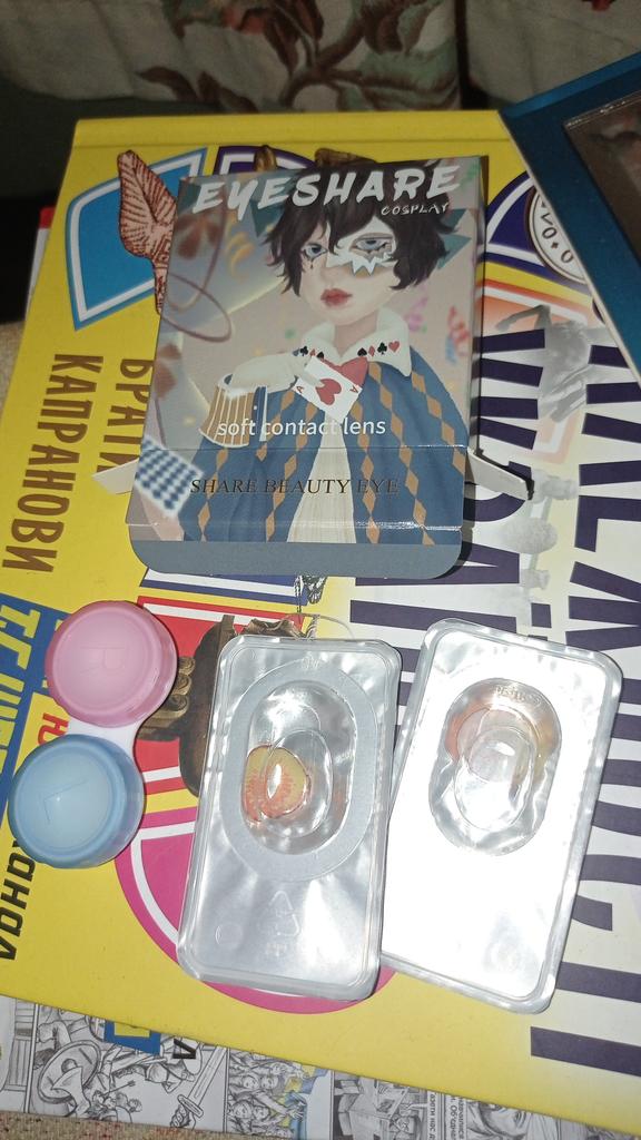 I thought they would be lighter, they look black, I wanted light purple. The big ones barely fit into my eyes, they are small, they are comfortable to wear, the lenses are very soft and gentle, but big and dark, the view is good, everything is visible normally. The container is a gift.