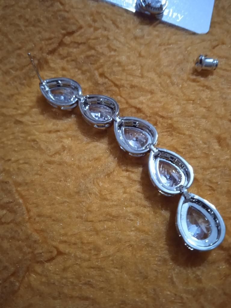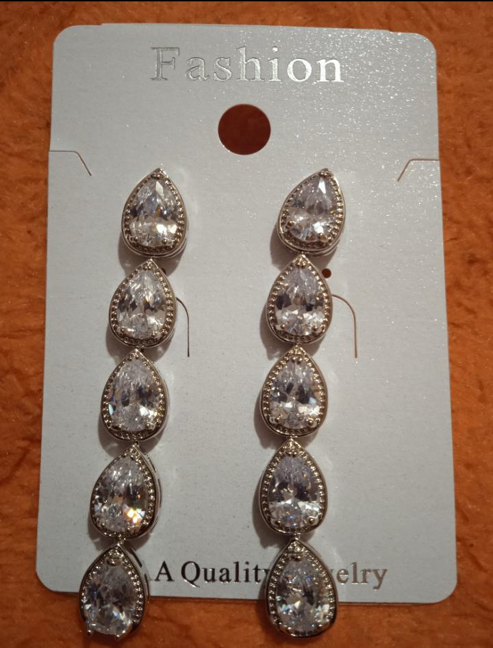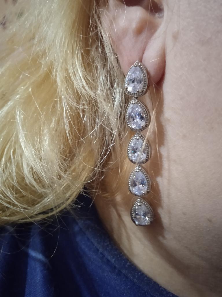 CMM Sparkling Water Drop Zirconia Long Dangle Earrings
