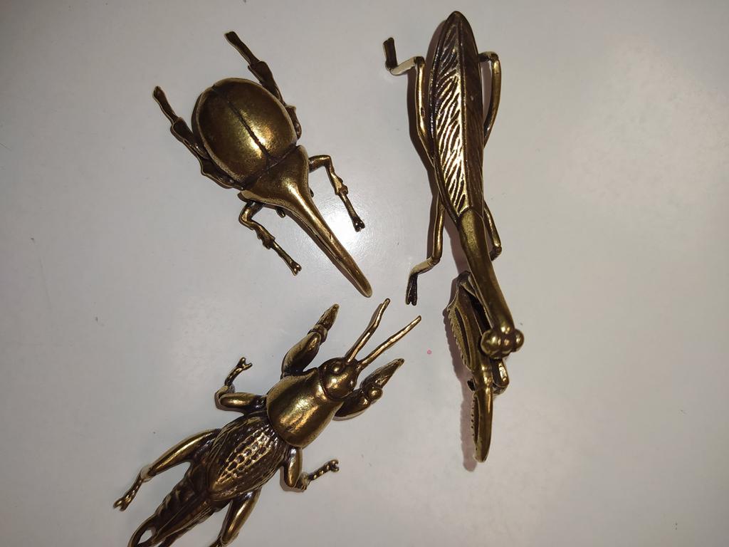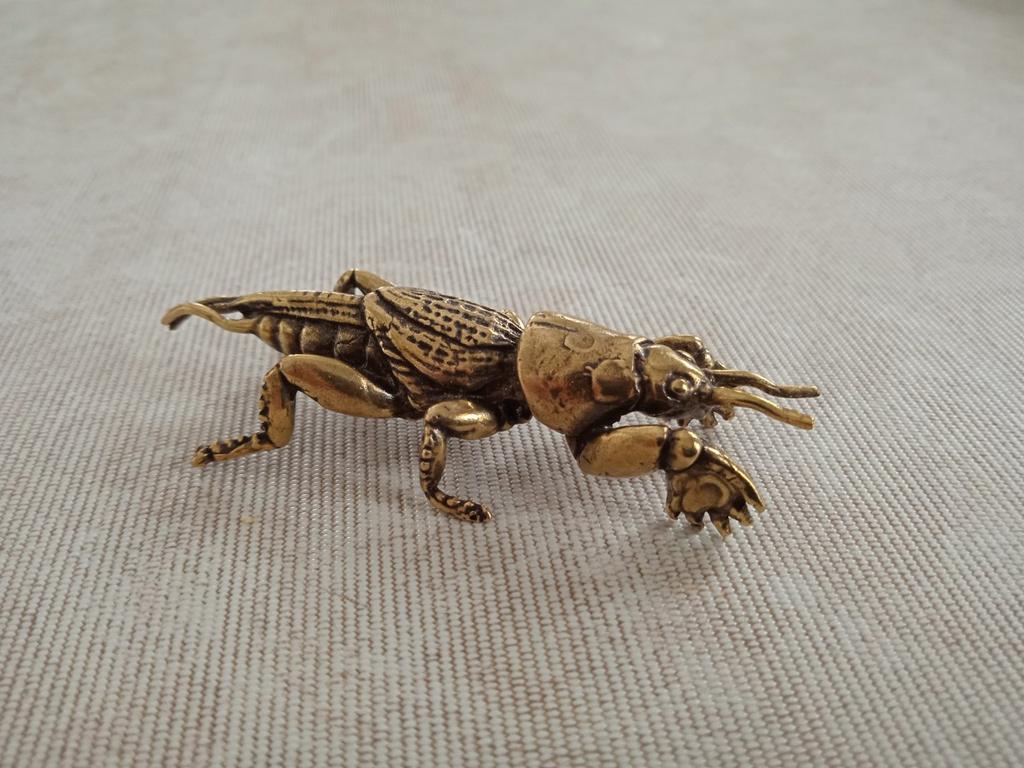 Antique Insect Figurines Miniatures Tea Pet Ornament Pure Copper Field Cricket Statue Desktop Decoration Collection Crafts Decor