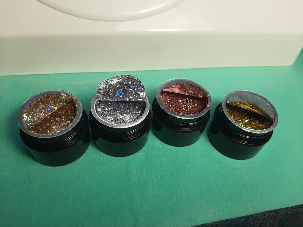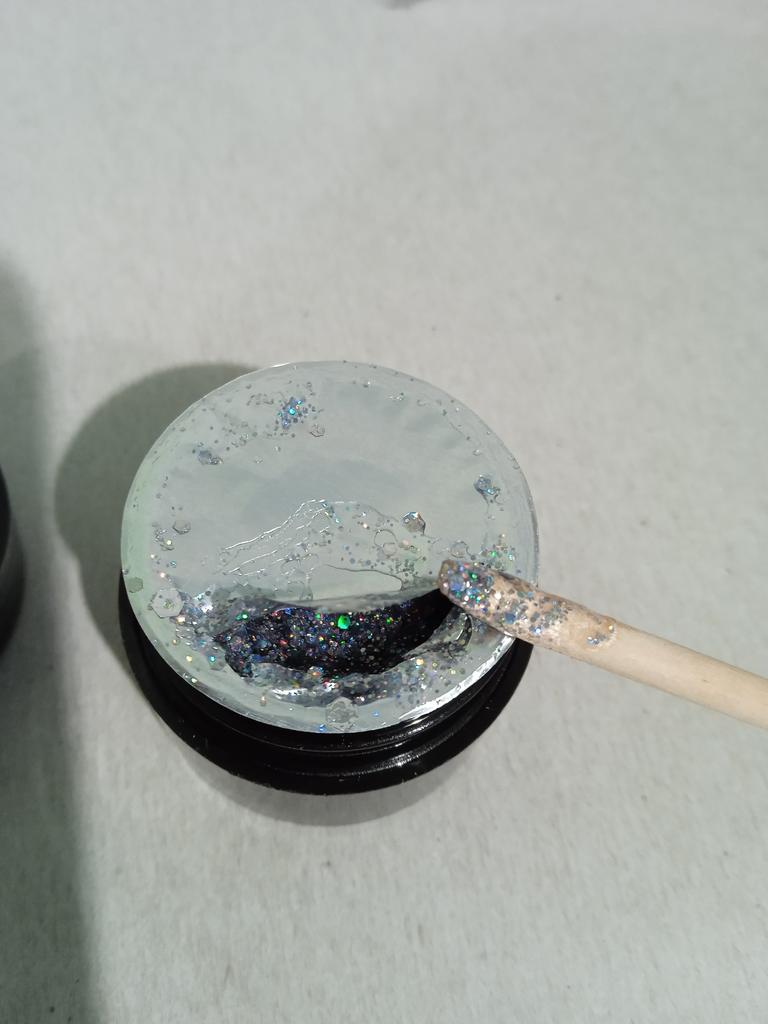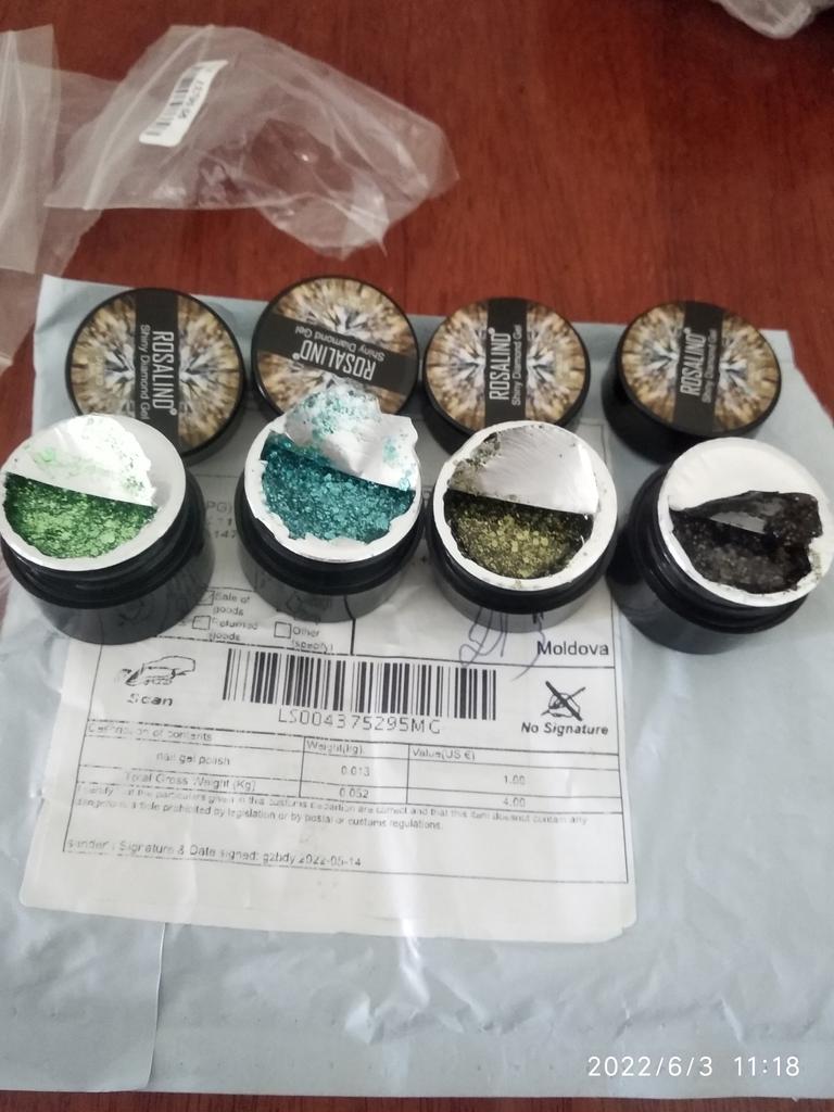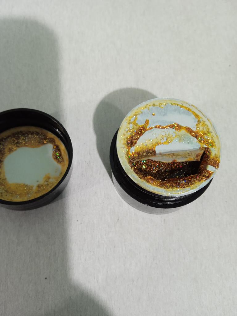 The jars are whole, a lot of sequins. In an ice lamp with a power of 54w, everything dried out for 60 seconds.