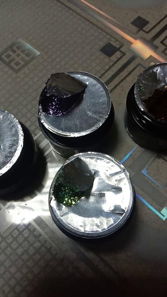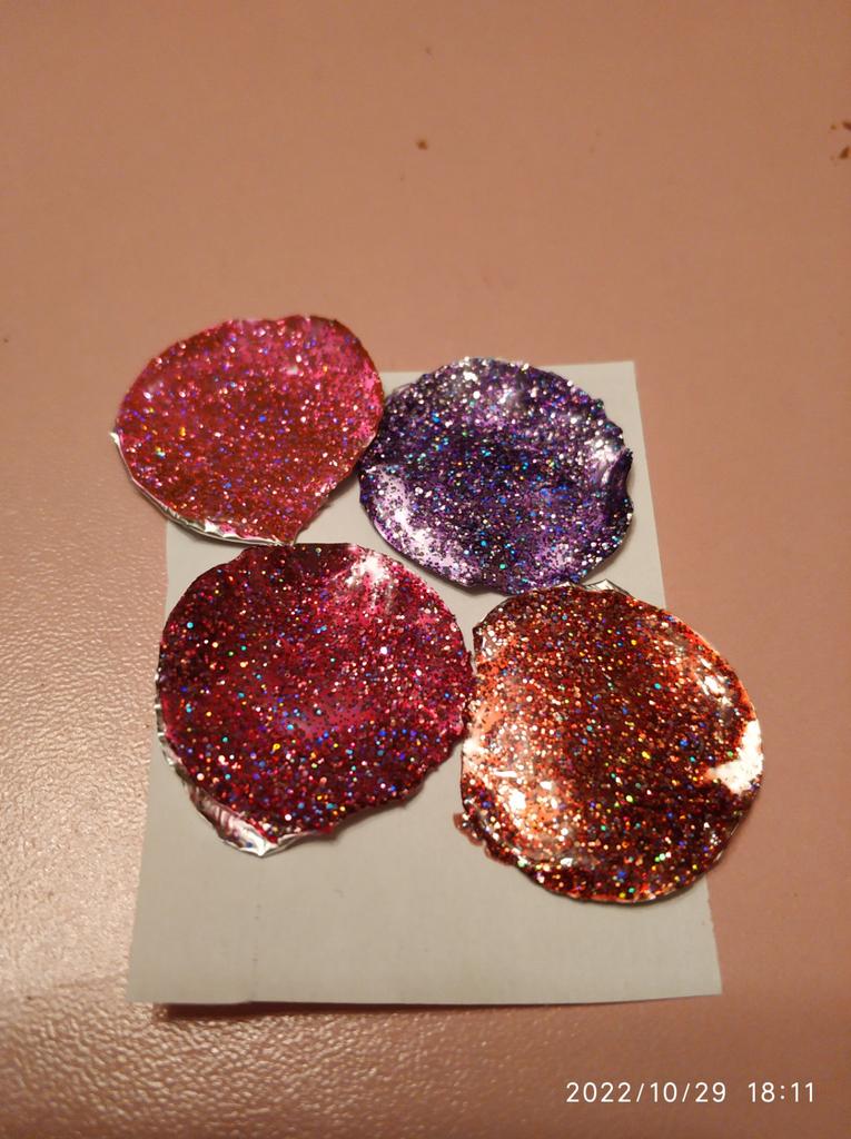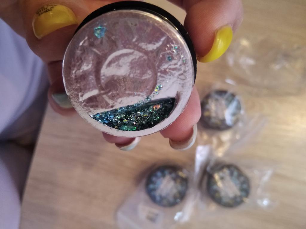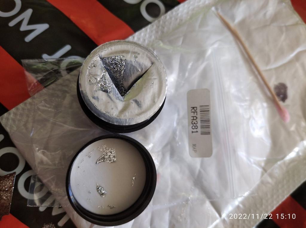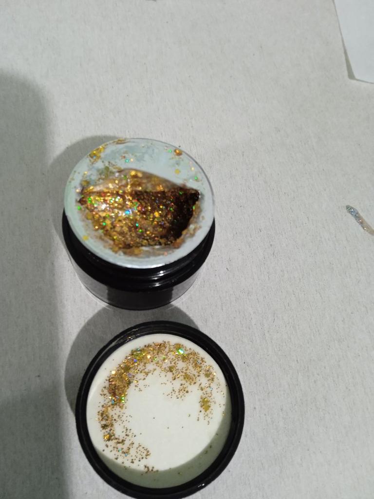 The jars are whole, a lot of sequins. In an ice lamp with a power of 54w, everything dried out for 60 seconds.