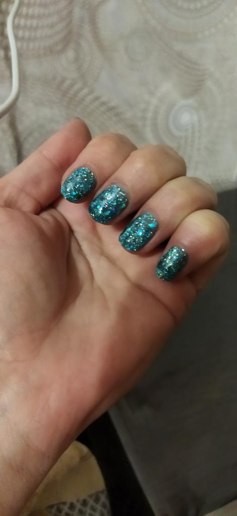 Looks luxurious. Sparkles even in dim light without application to the nail plate.