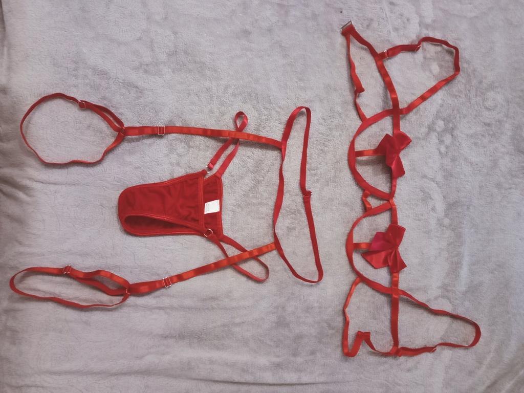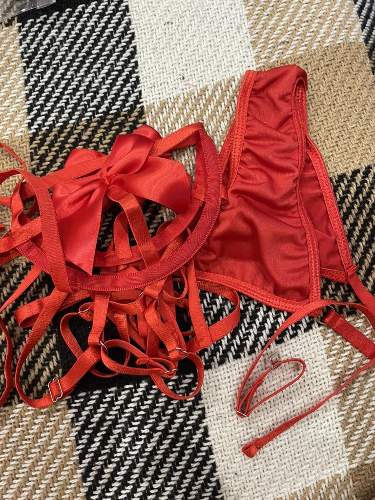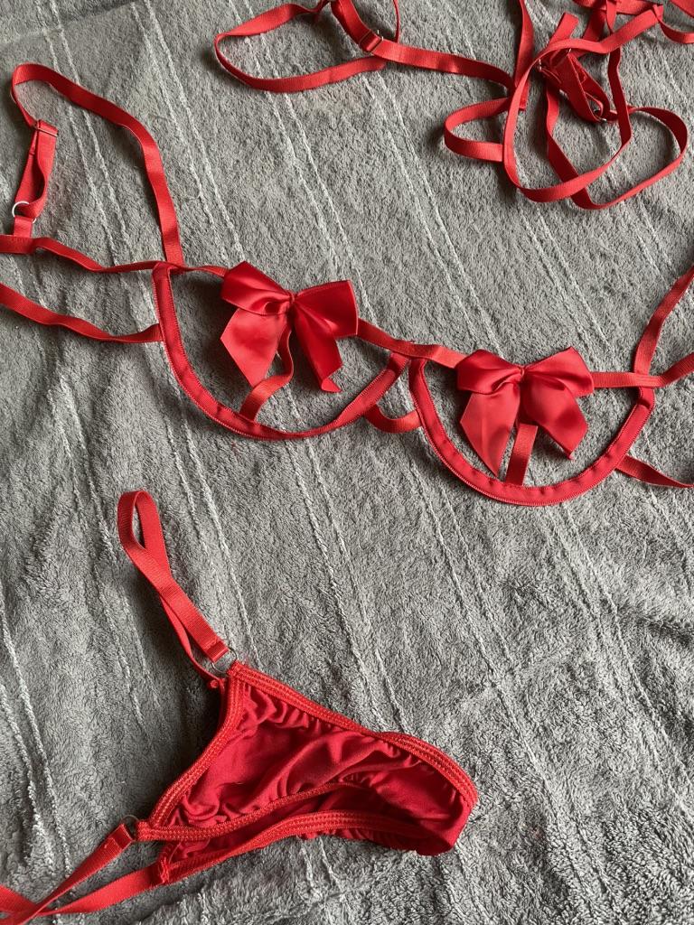 Eroticunderwear Sexy Cute Bowknot Lingerie Underwire Bra Hollow Out With Thong Garter Christmas Festival Cosplay For Women