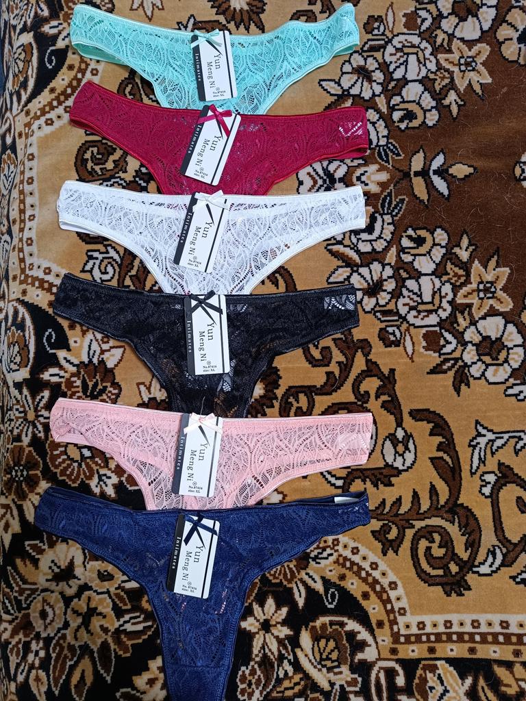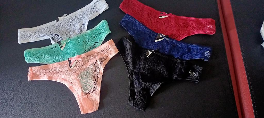 LOT 6 Lace Embroidered Thong Panties Double Crotch Knickers Bow-knot G-string
