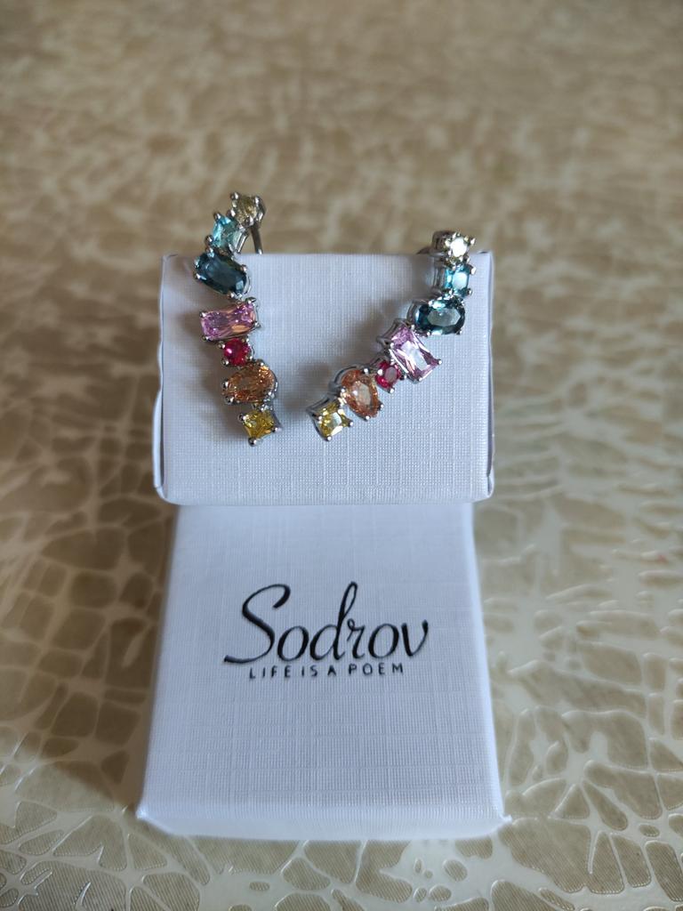 SODROV Geometric Clip Earrings With Colorful Zircon
