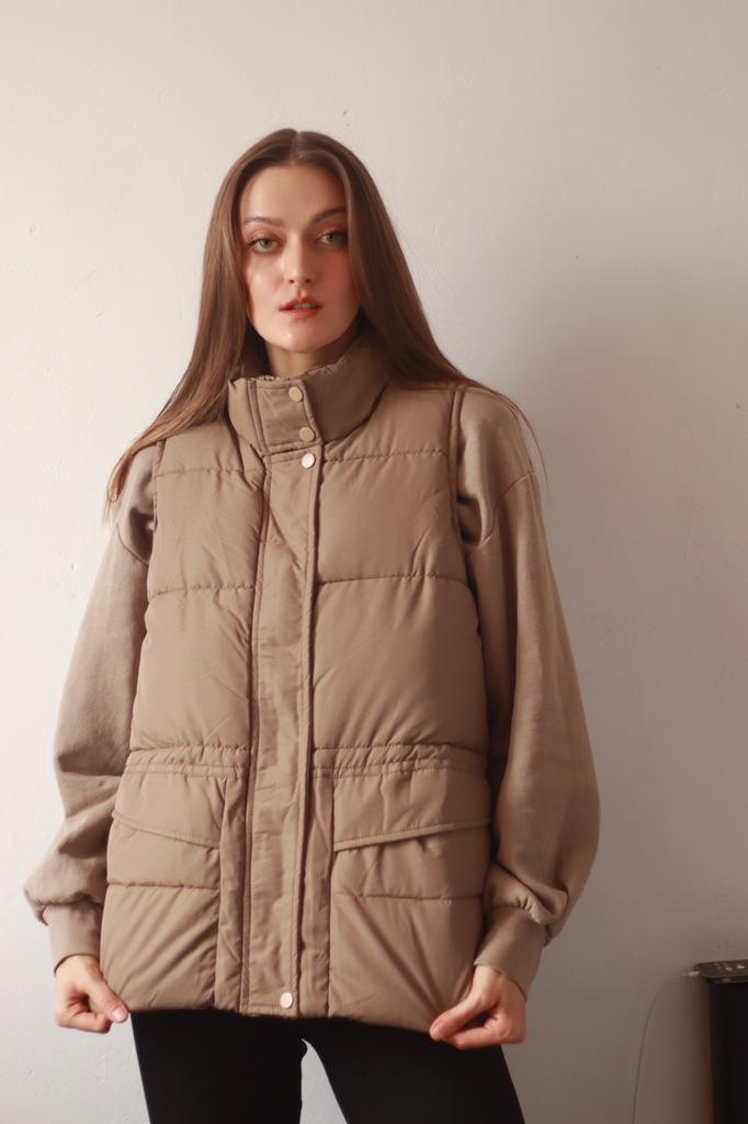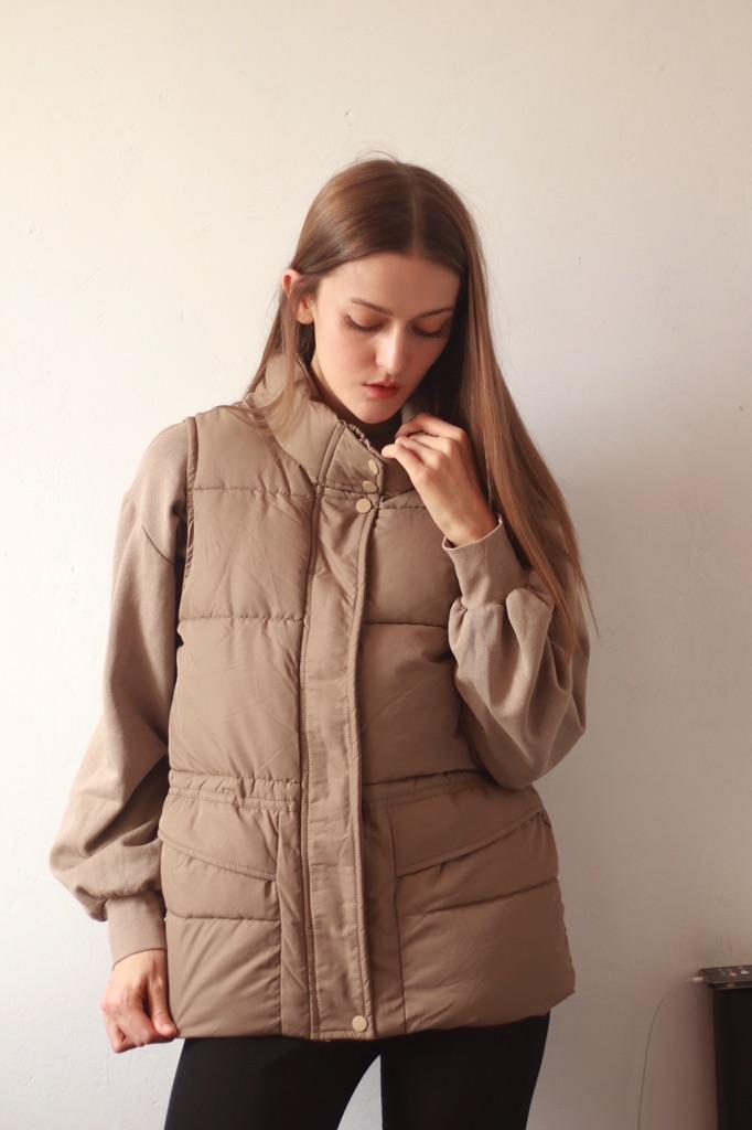 Women's Solid Chic Short Vest Sleeveless Stand Collar Jacket For Ladies Zipper Warm Winter Coat