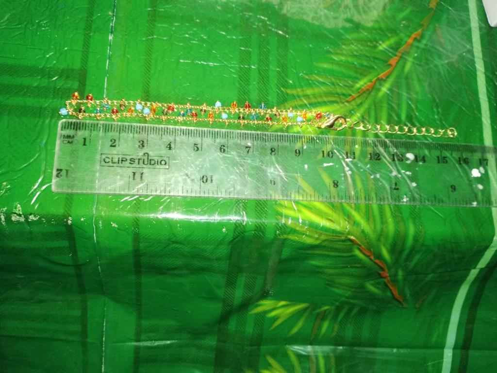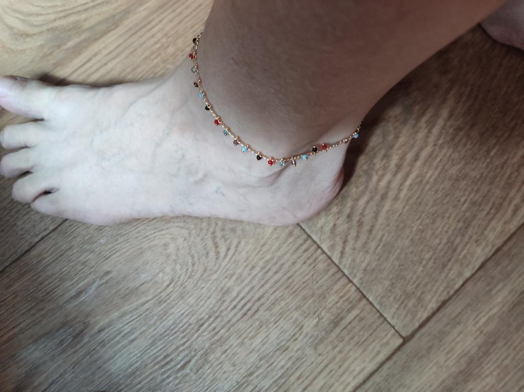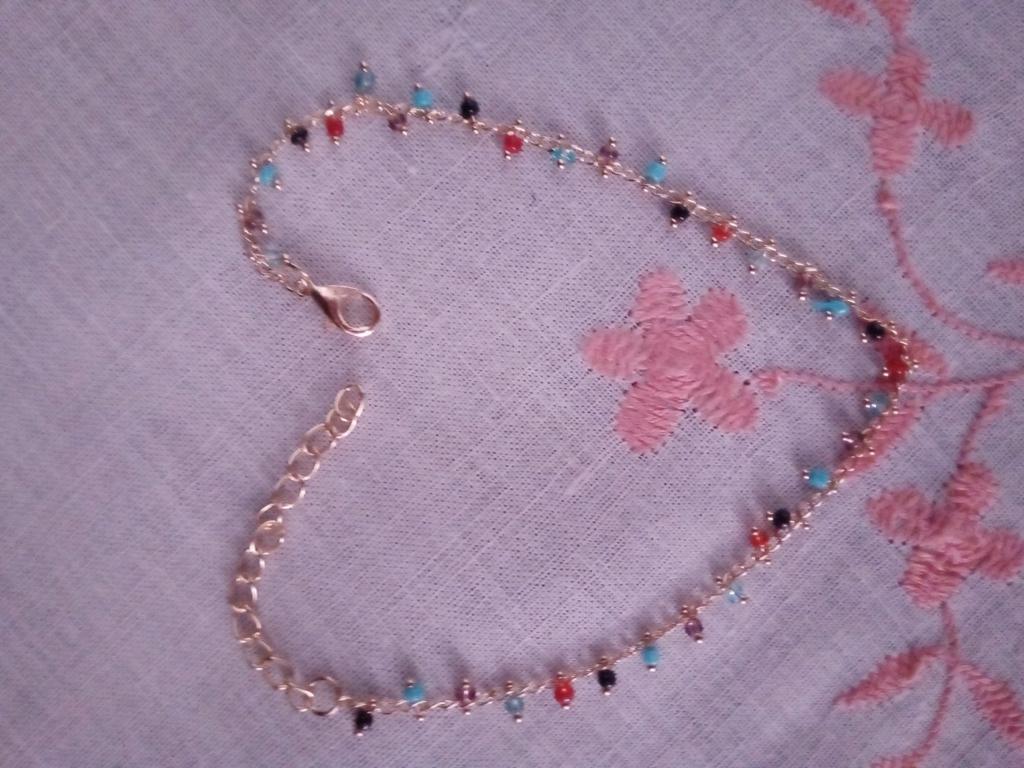 All is well. Small good beads. Fits different foot widths. I try not to wear it in the water