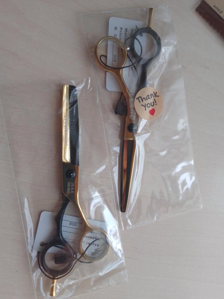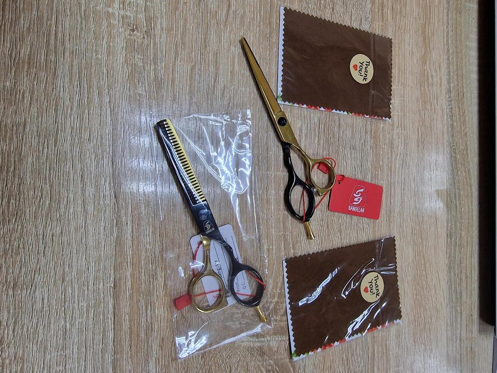 SANGELAR 5.5 Inch Hair Scissors Professional Black and Gold Hairdressing Scissors Set Cutthing Thinning Barber Shear