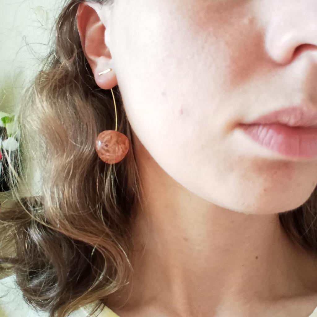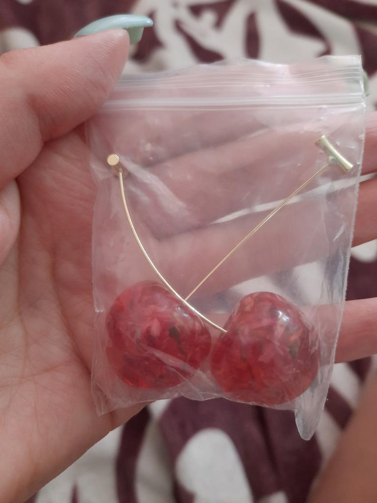 Original earrings. The ears are not pulled by the lobe. The tail of cherries is golden. I hope they don't fade quickly. I am satisfied with the purchase.