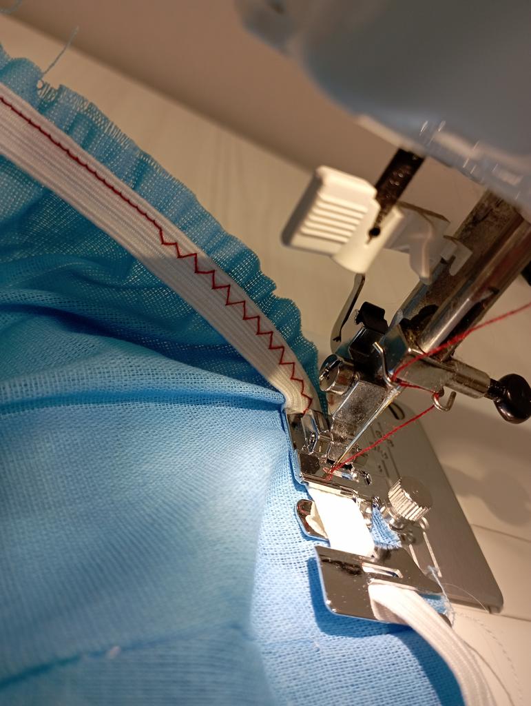 I sewed the elastic on this foot, it’s convenient that the fabric is shirred evenly. It will come in handy.