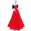 Red Black Lace Long Dress Black Fur Cape Shawl For Barbie Doll Outfits Fashion Doll Clothes Set 1/6 Dolls Accessories Kids Toys