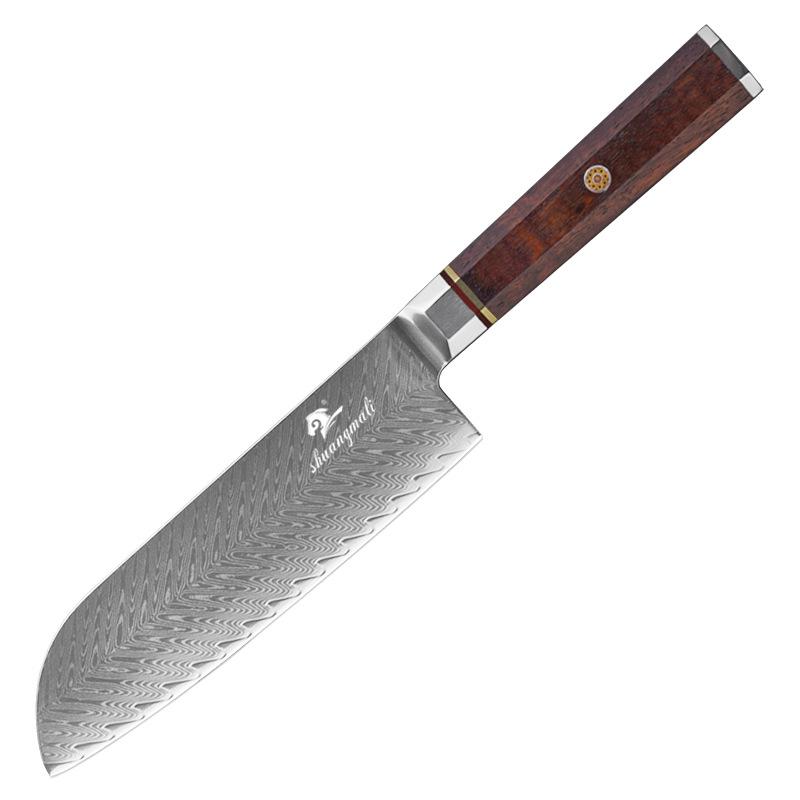7 Inch Santoku Knife Damascus Steel Knife Rosewood Octagonal Handle Stainless Steel Chef's Knife