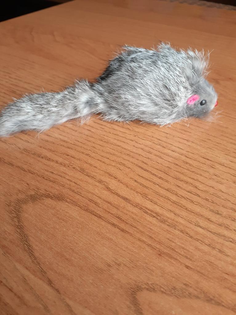 A very appropriate toy since it is made of rabbit fur, which makes cats believe that it is more real.