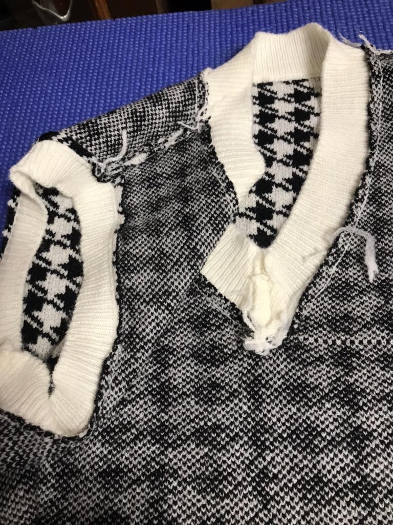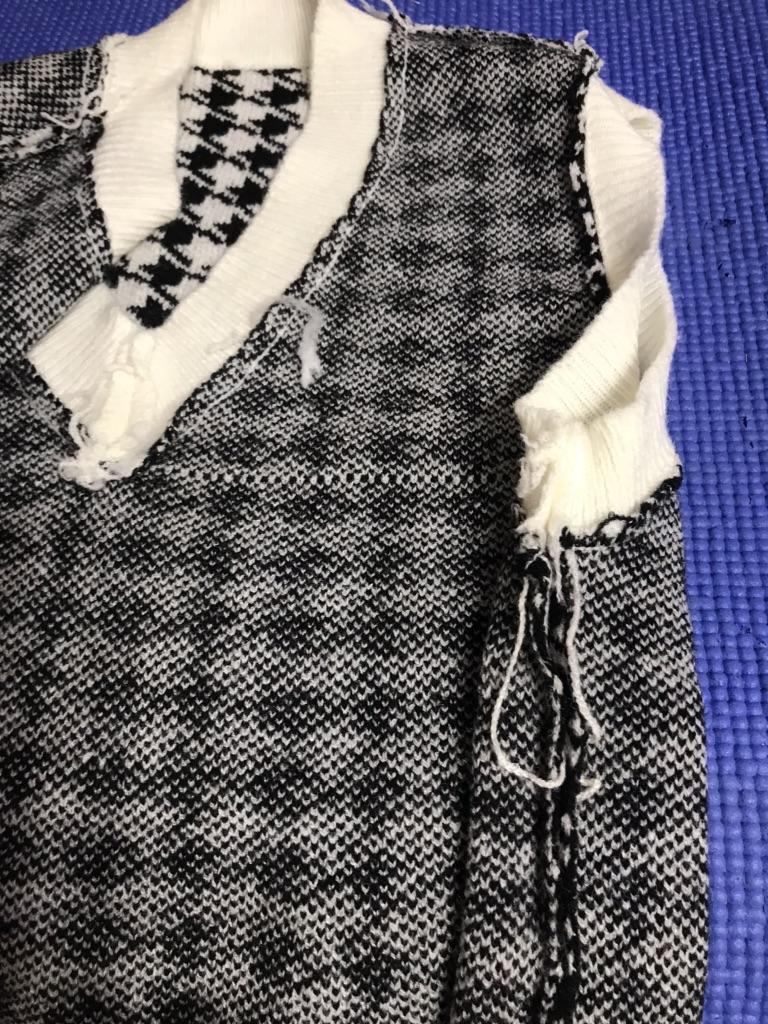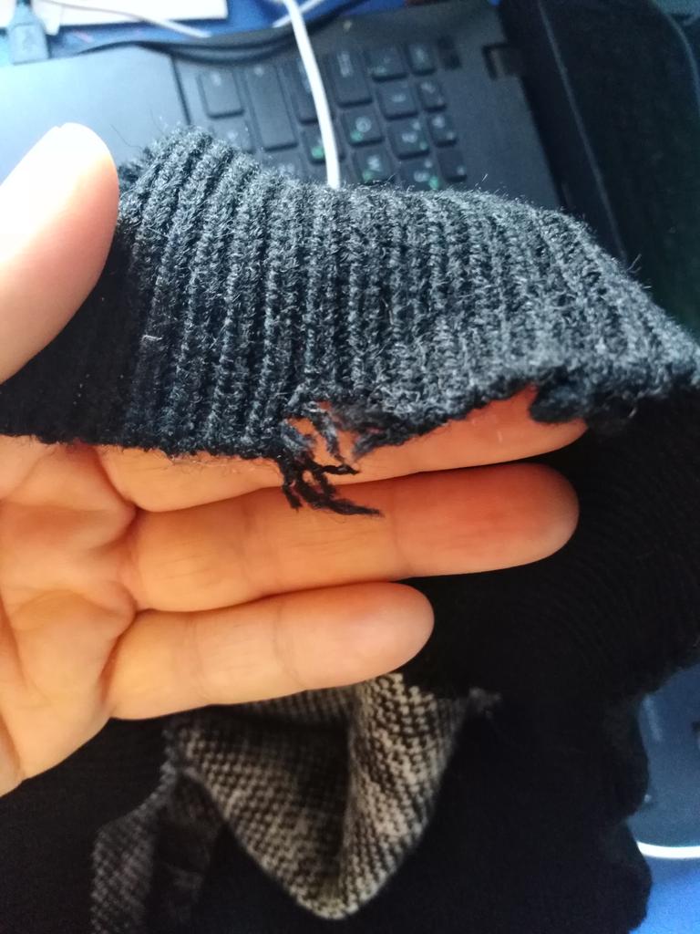 The sweater is just right, as ordered, but the seams are spreading and the threads are sticking out. If you cut it off and pour it with a lighter, it will generally be fine
