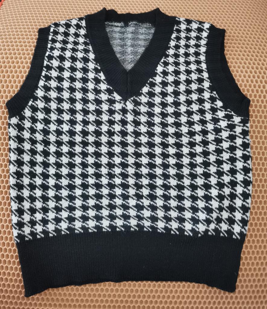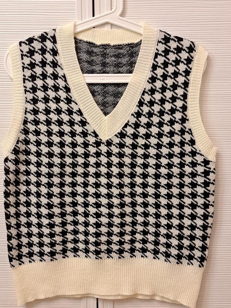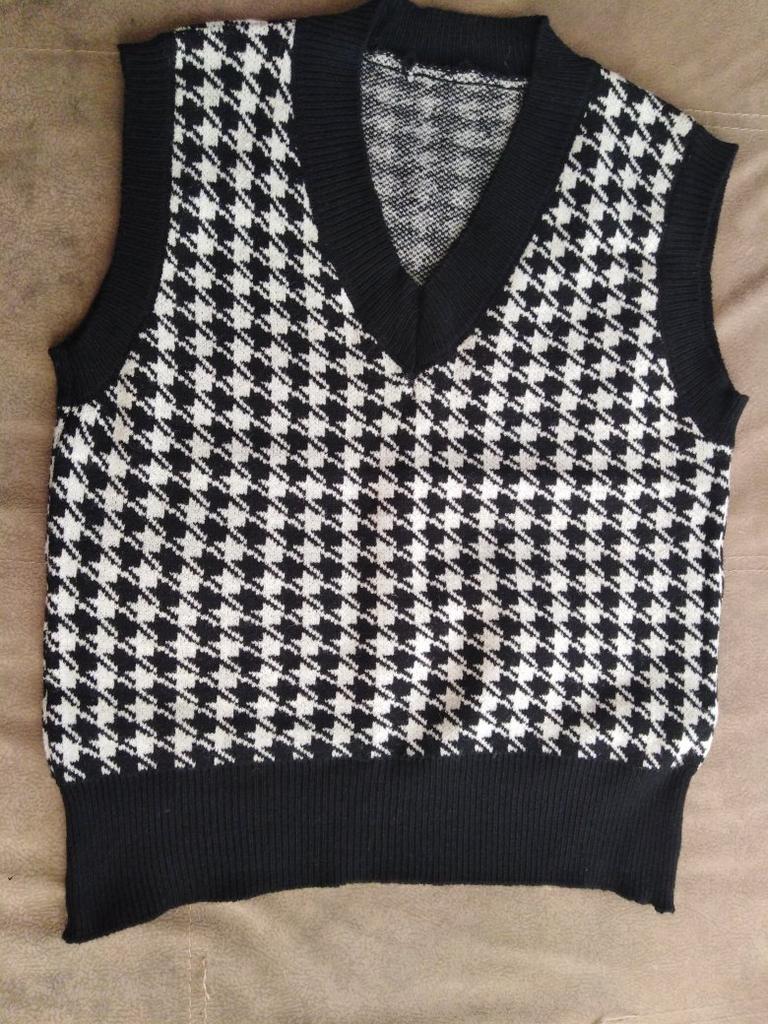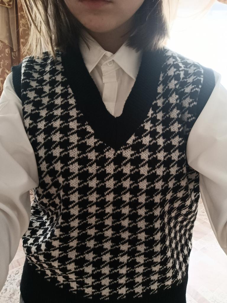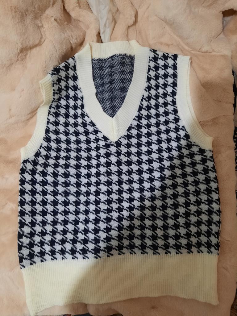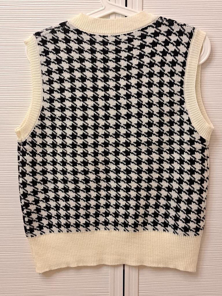 Girls Houndstooth Loose Knitted Vest Sweater Women Sleeveless Thick Vintage Sweater Vest Female Waistcoat Chic Tops 17502