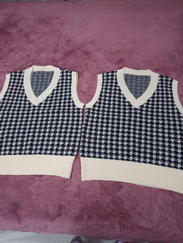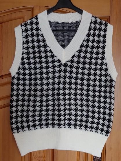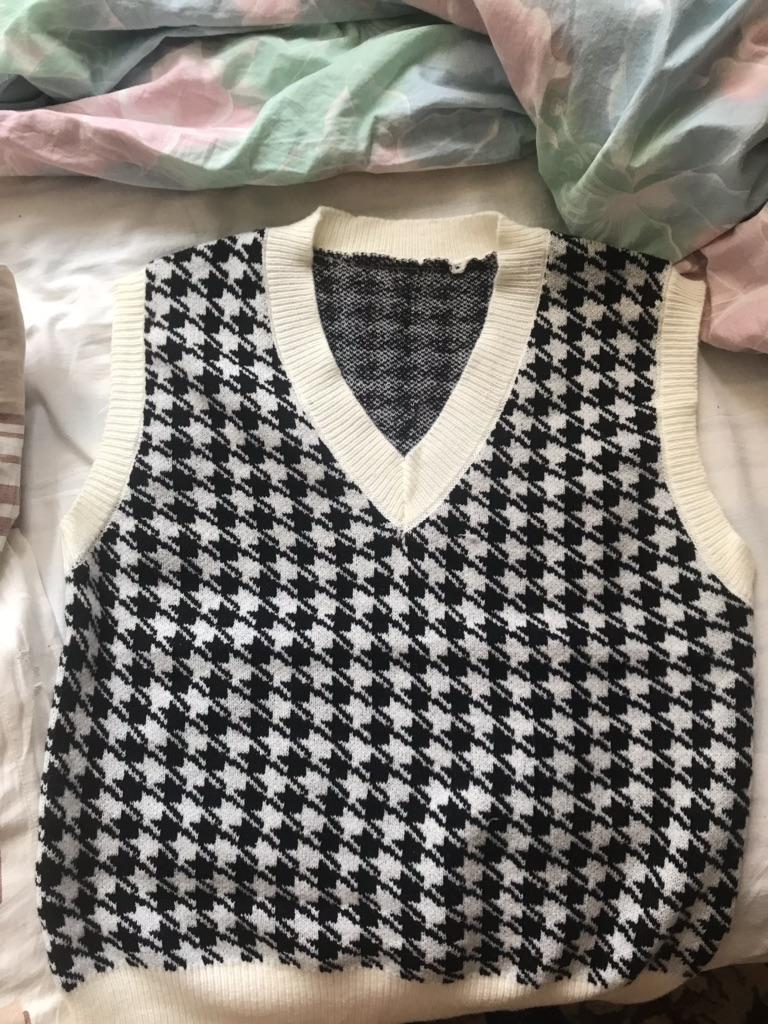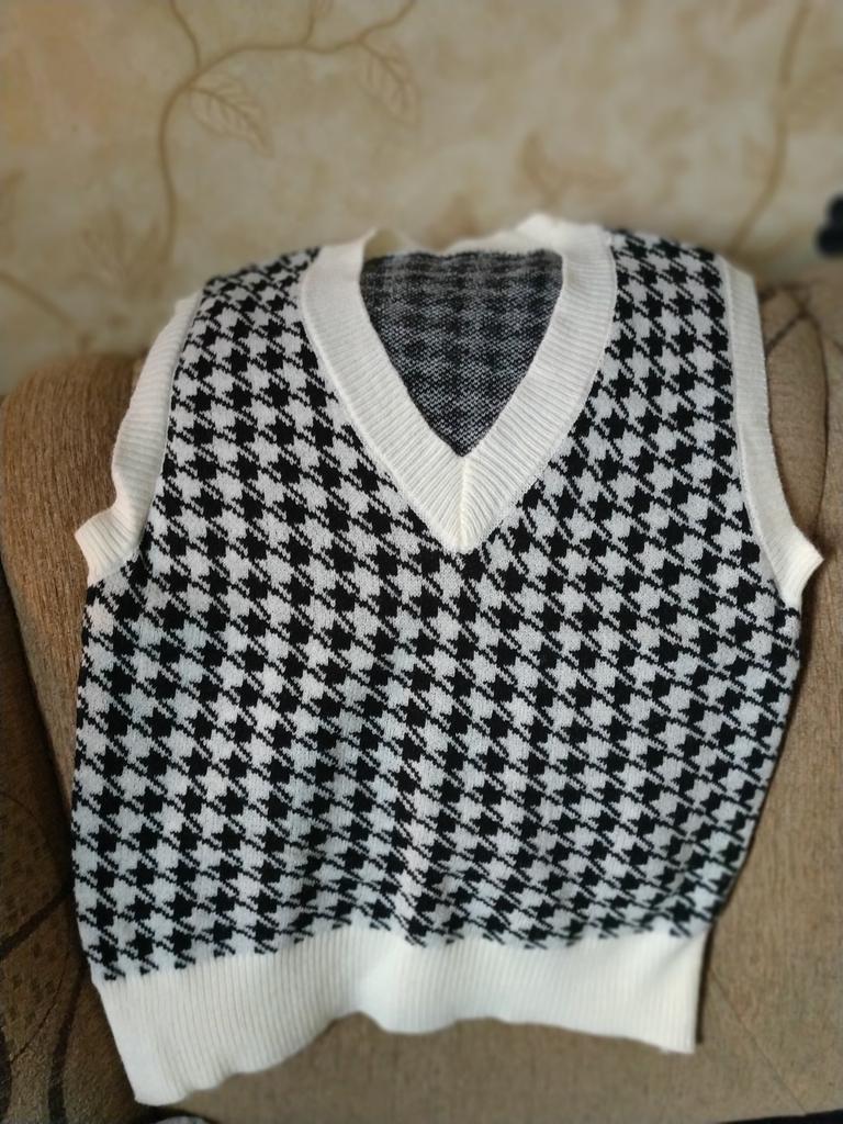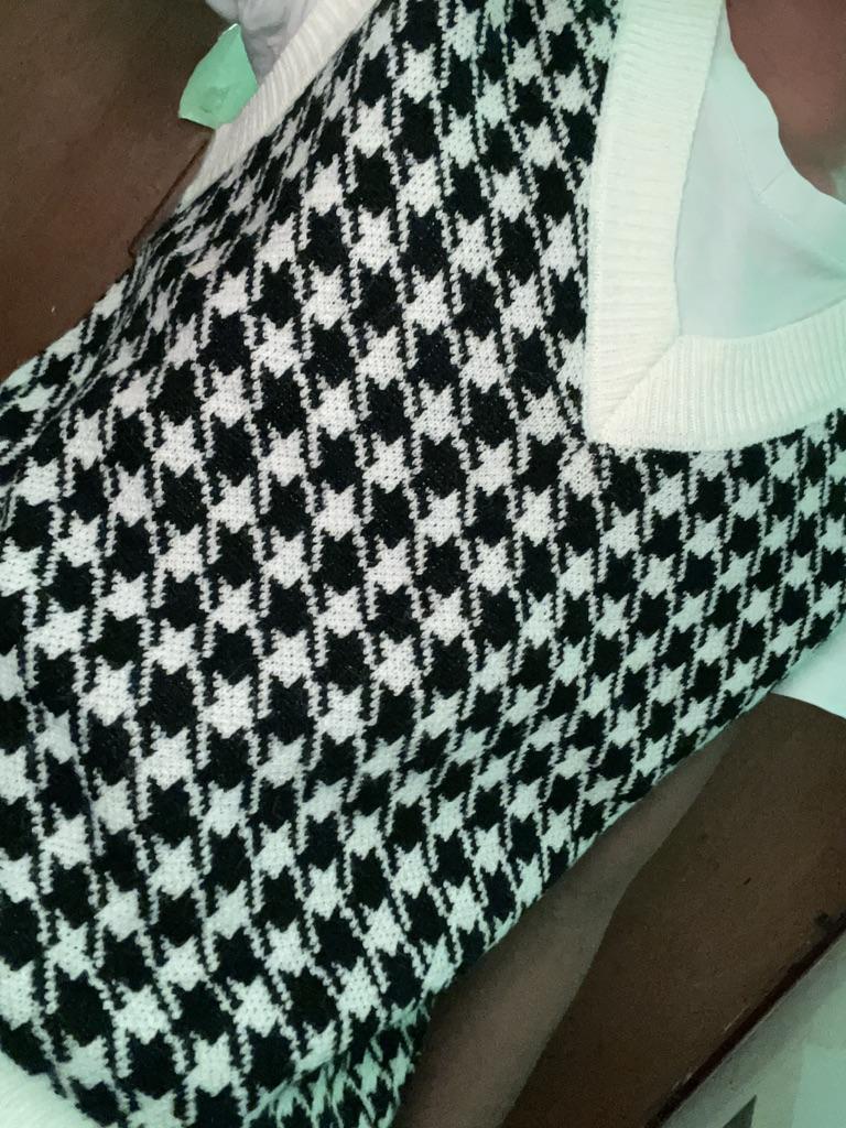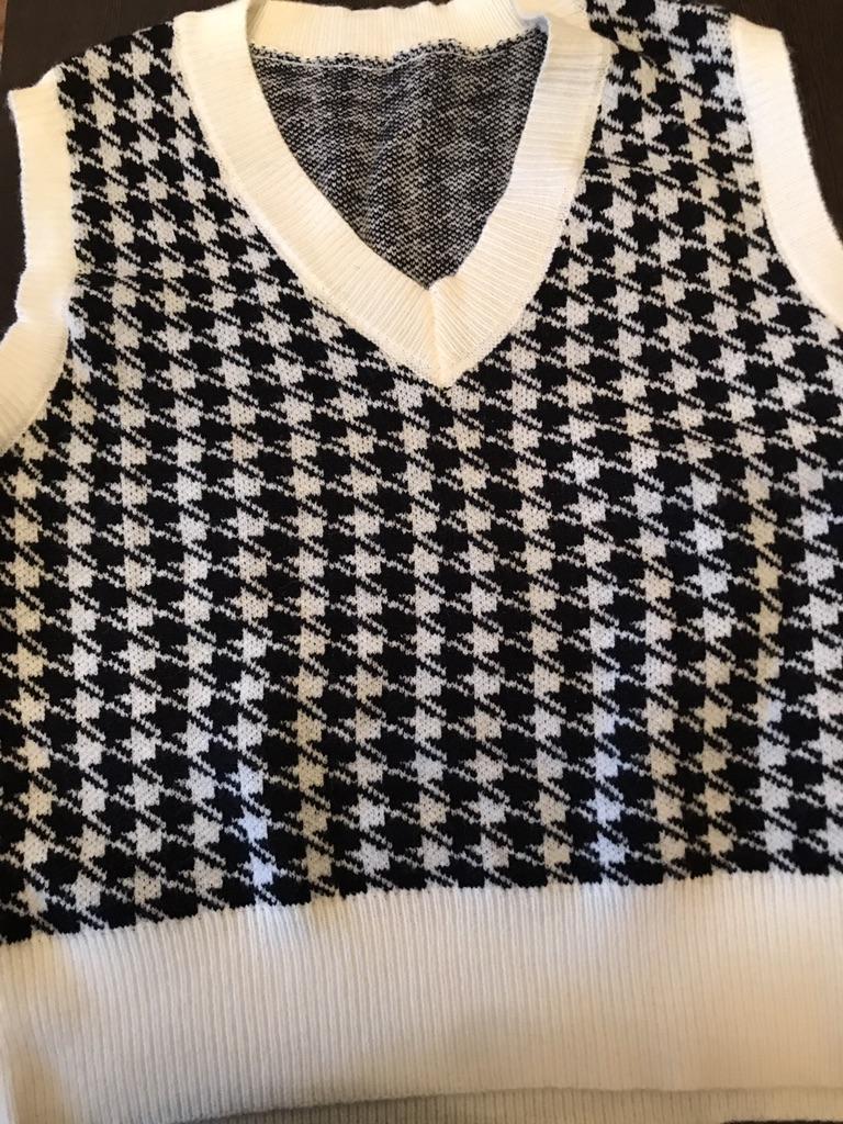 Girls Houndstooth Loose Knitted Vest Sweater Women Sleeveless Thick Vintage Sweater Vest Female Waistcoat Chic Tops 17502