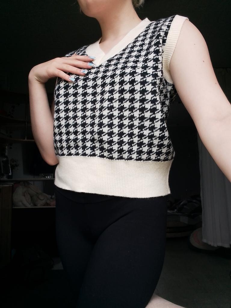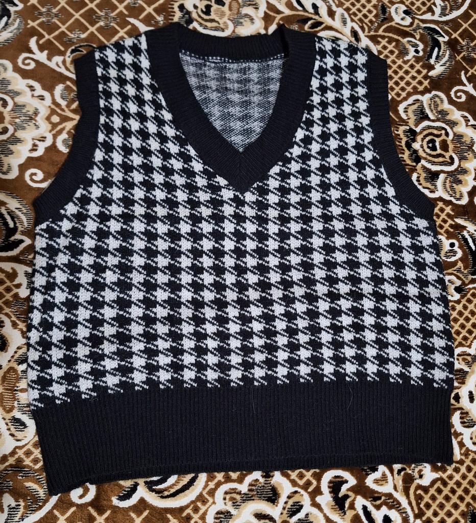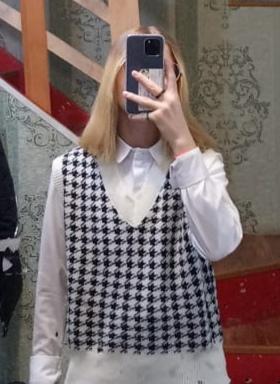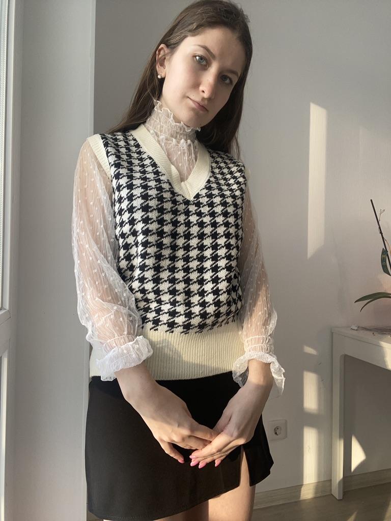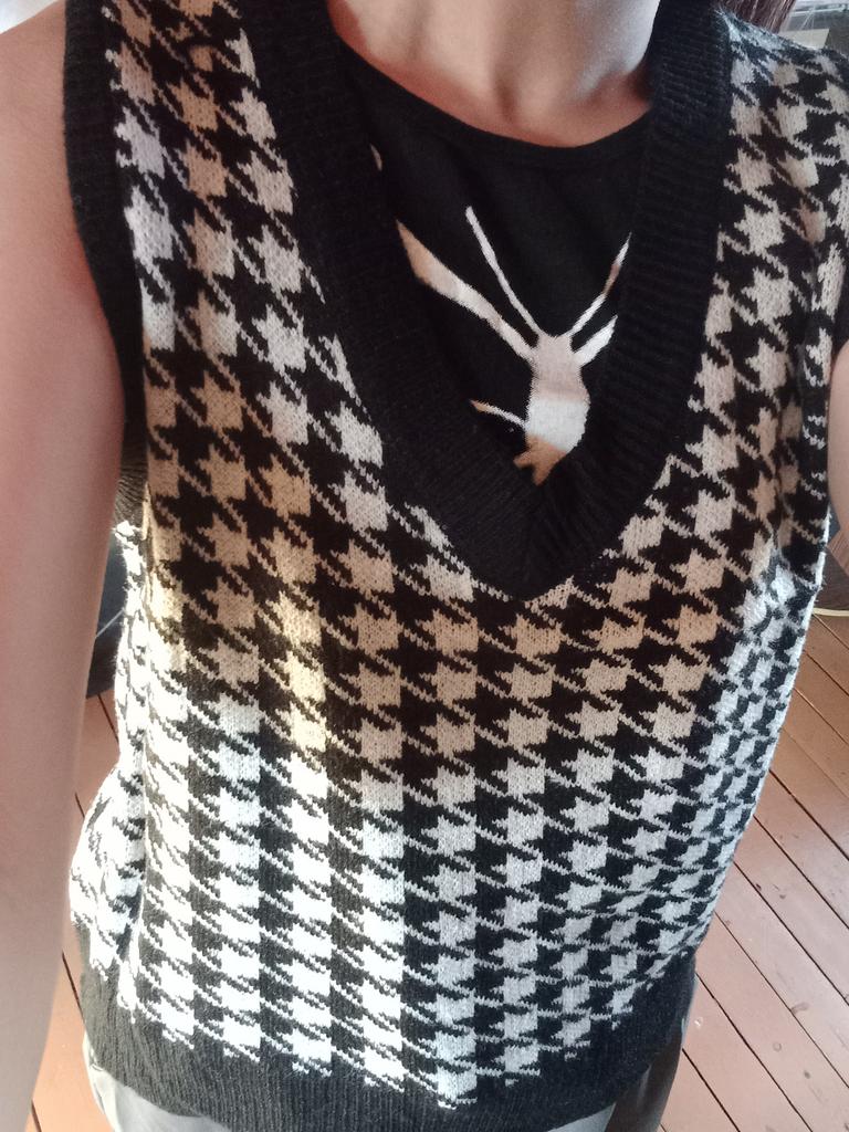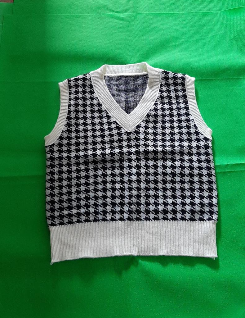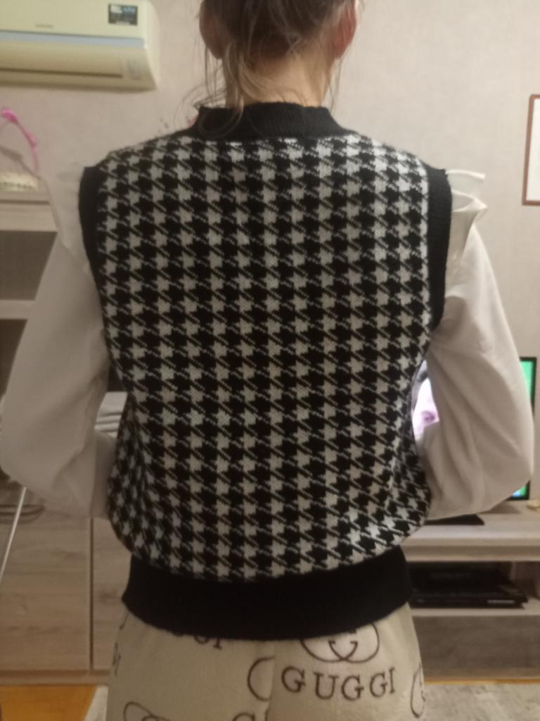 Girls Houndstooth Loose Knitted Vest Sweater Women Sleeveless Thick Vintage Sweater Vest Female Waistcoat Chic Tops 17502