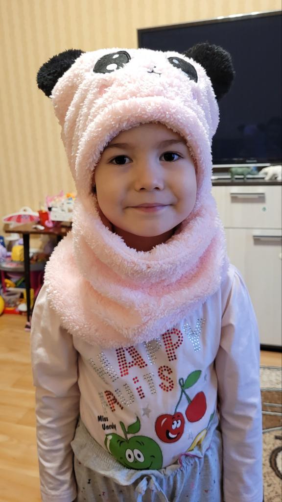A very soft funny hat, cold for the winter, very big for a child, they tried everything on and laughed heartily. Thank you)))