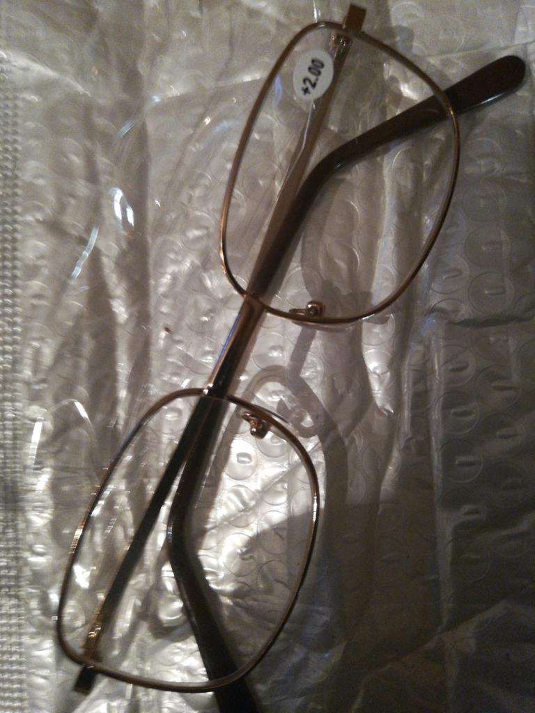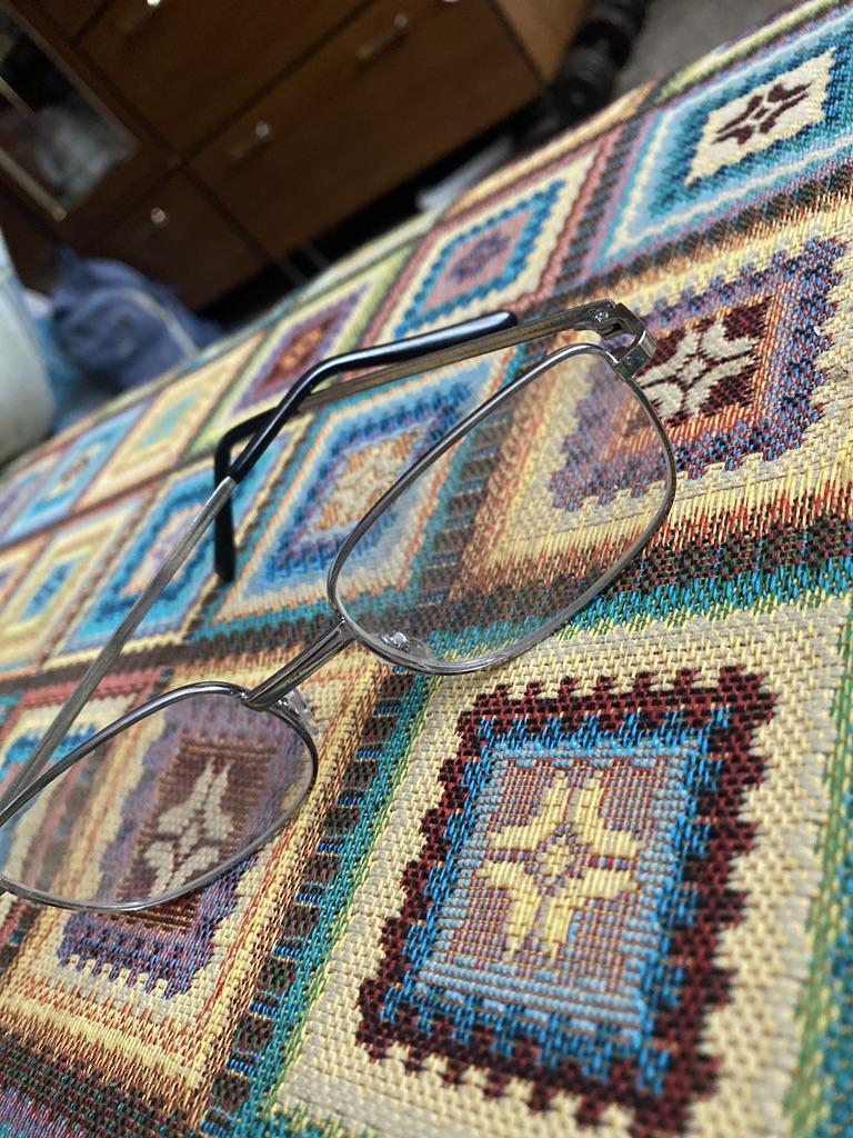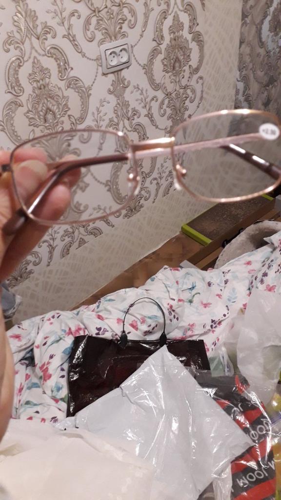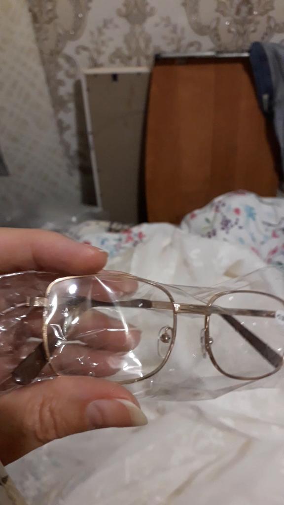 The frame is crooked, of an irregular shape, the glasses are defective, the metal is turned backwards