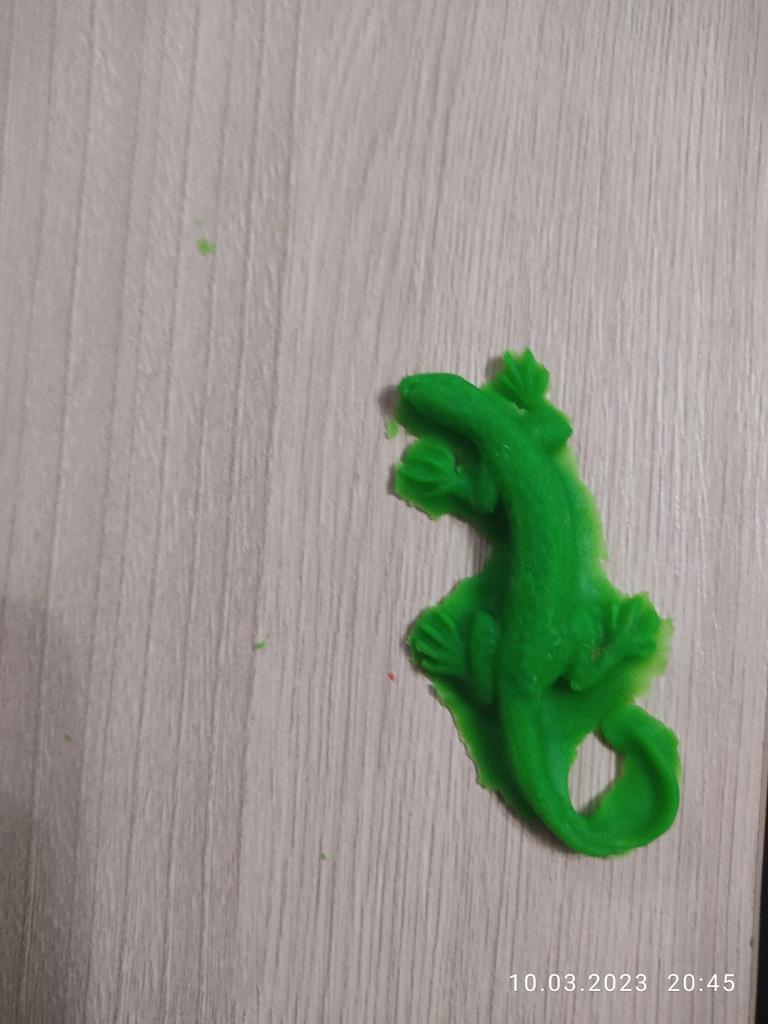 A very shallow form of a lizard. The paws are completely transparent and it is inconvenient to fill them in because they turn out flat.