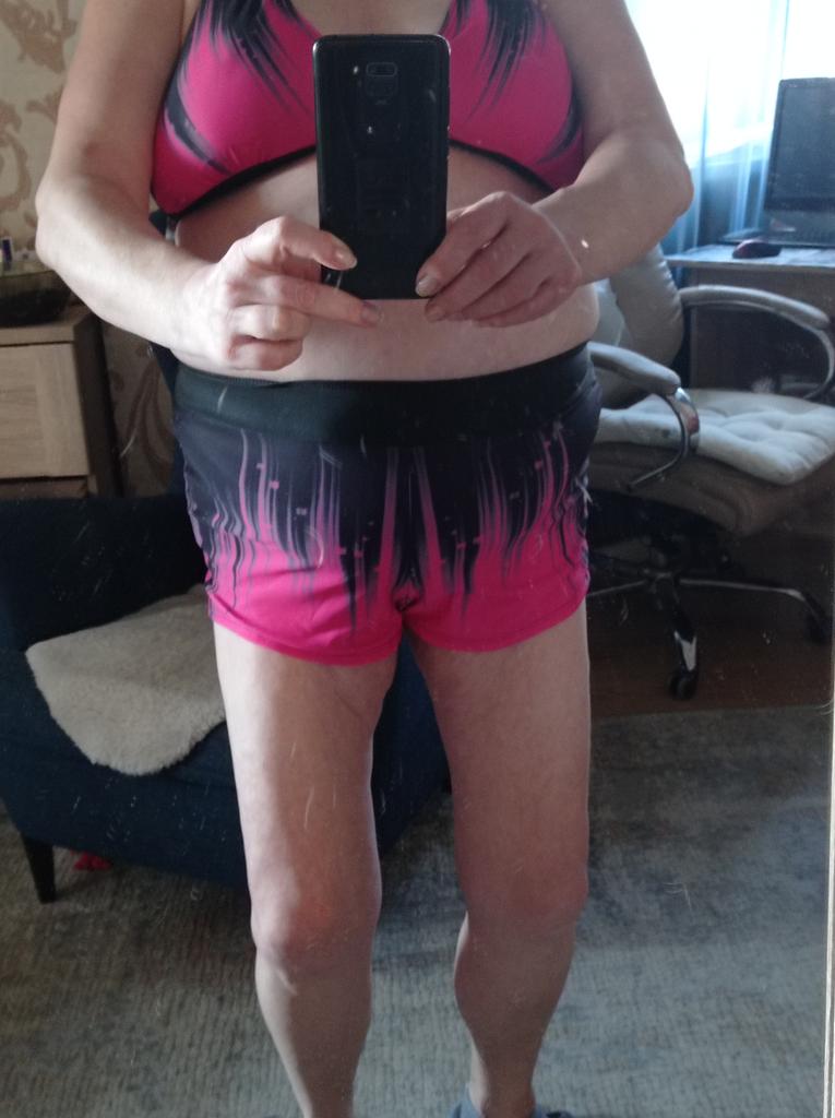 The shorts are huge, the bra is small, poorly sewn