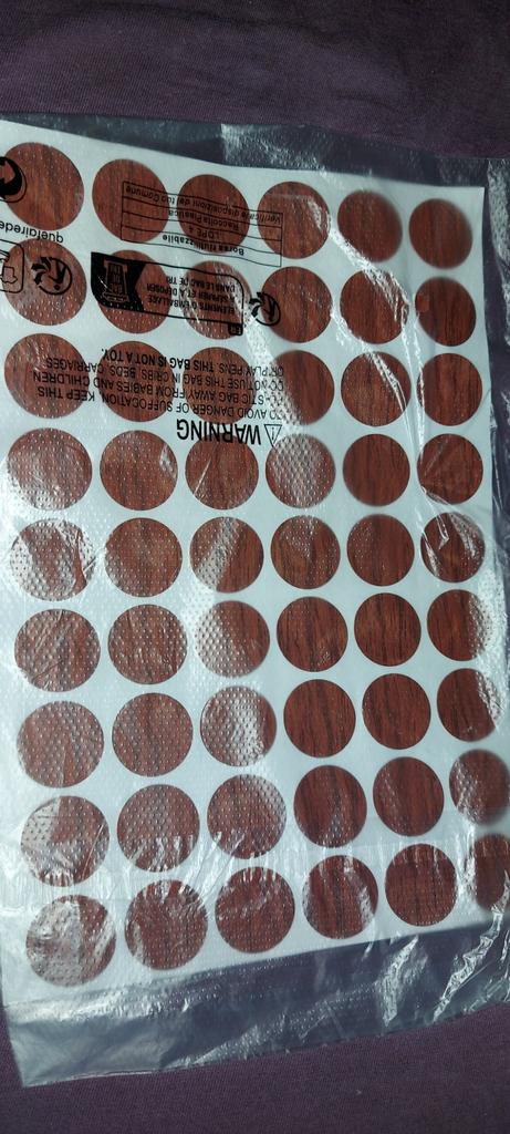 I also got these self-adhesive sealing stickers for furniture for 1 β½. Too bad the color didn't match...