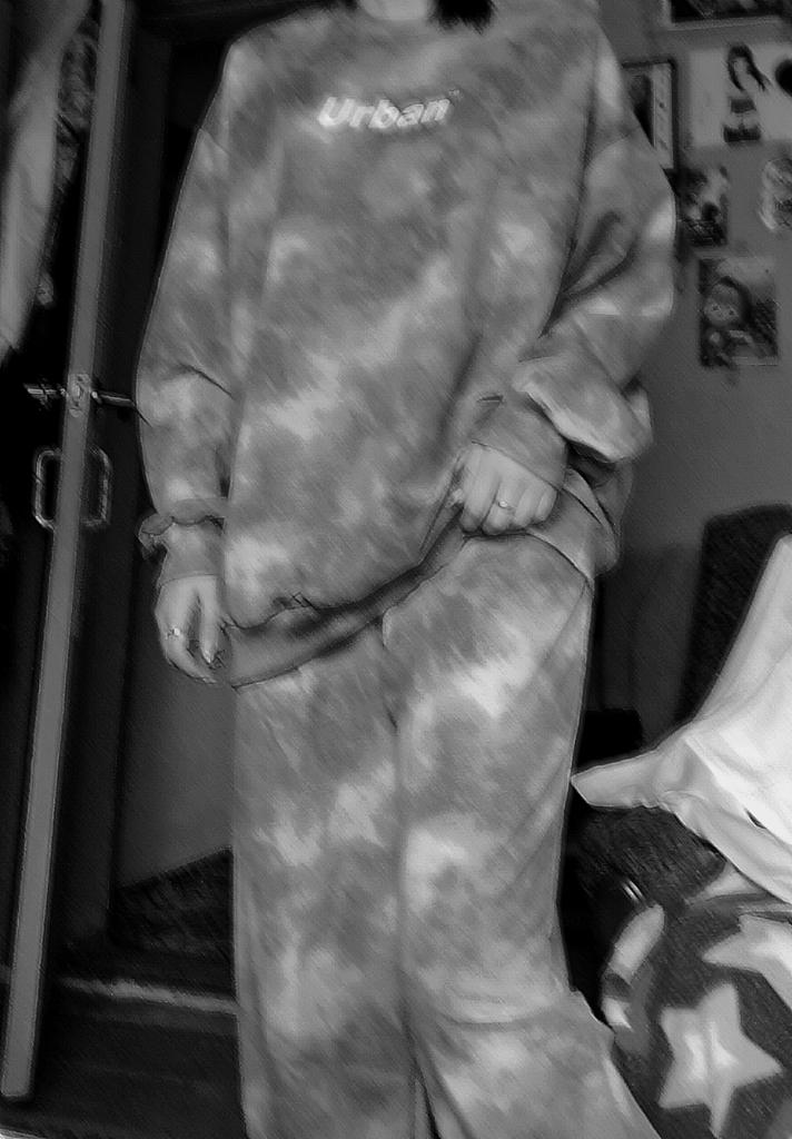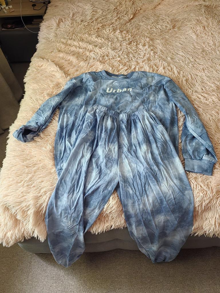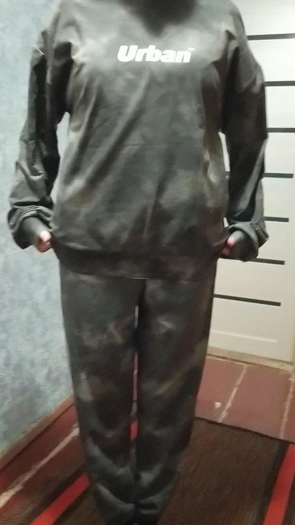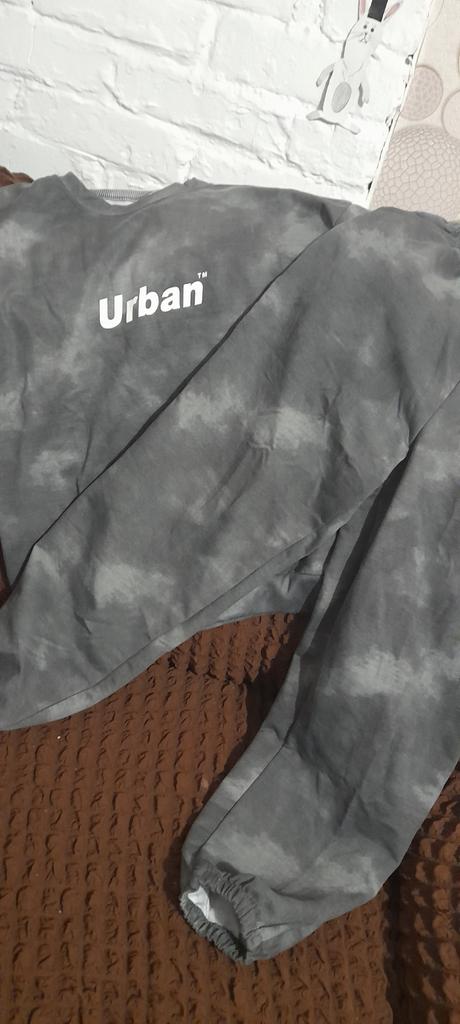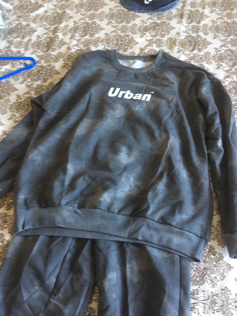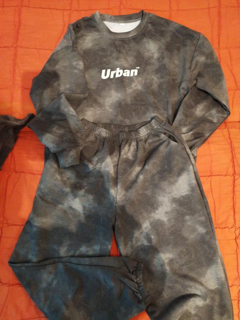 The sweatshirt with the inscription 'Urban' is a little embarrassing, but the pants are great in this suit.
