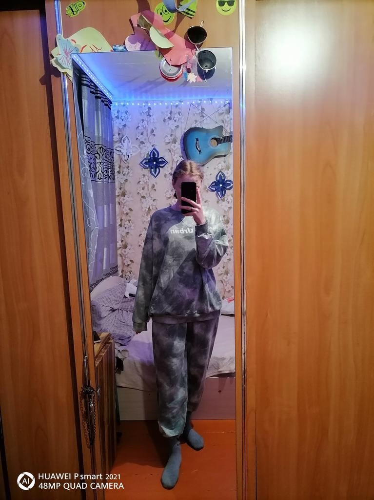 The suit is thin, odorless, the threads do not stick out, and the color did not change when washed. It's really big, especially the jacket. So I give it a five. I took it for 1664