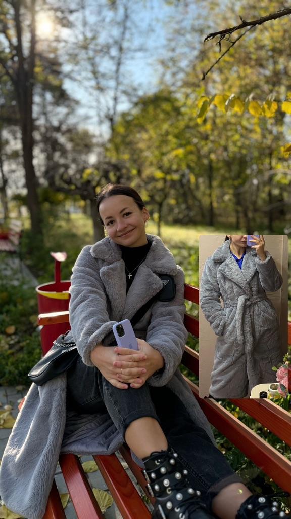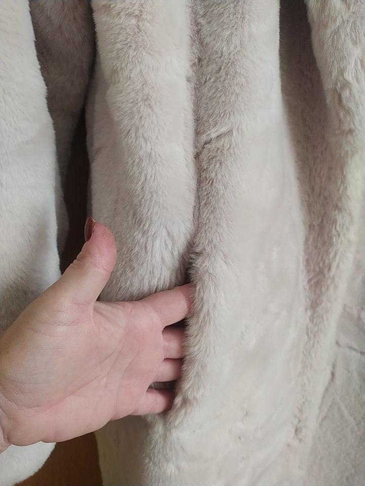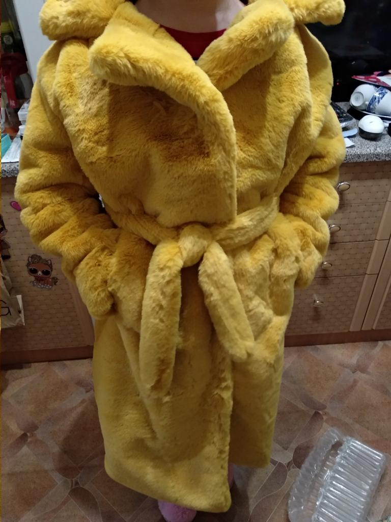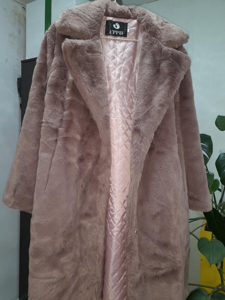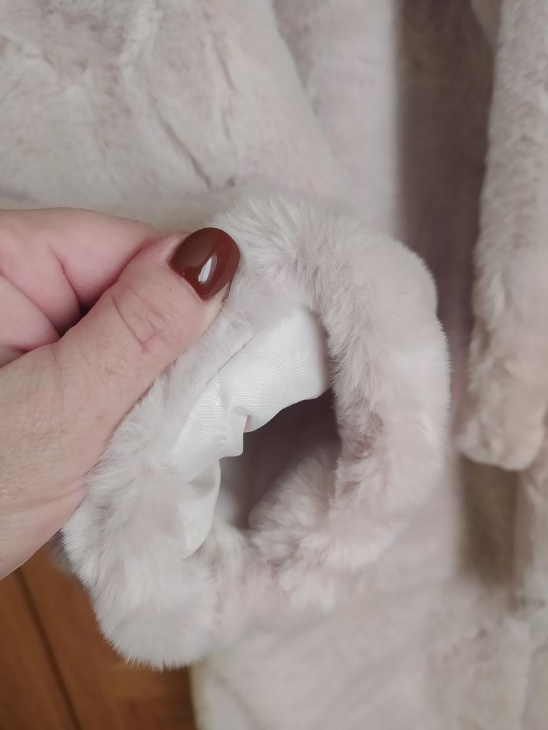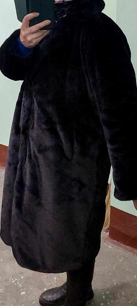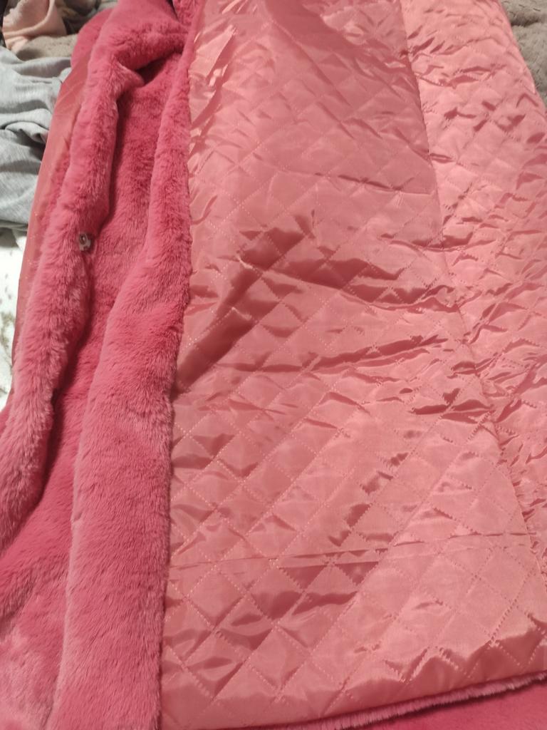 Not a fur coat, but a beauty!!! There are buttons, there is a belt, pockets Long, your legs will be warm Very pleasant to the touch Although light, but very warm
