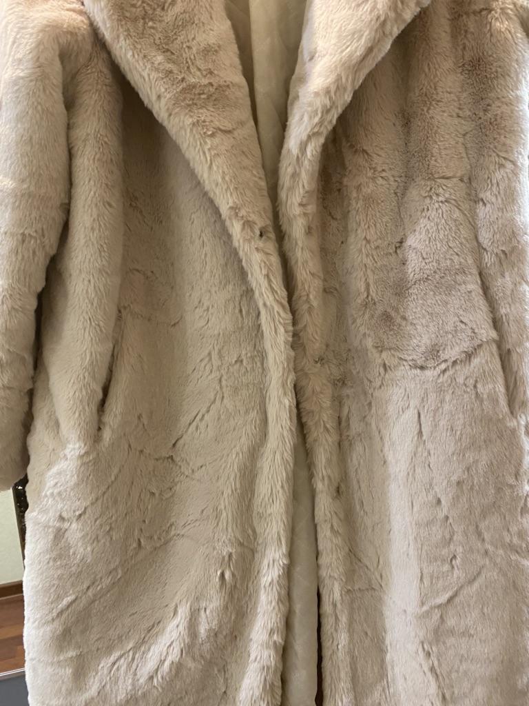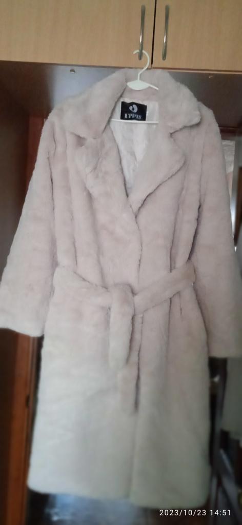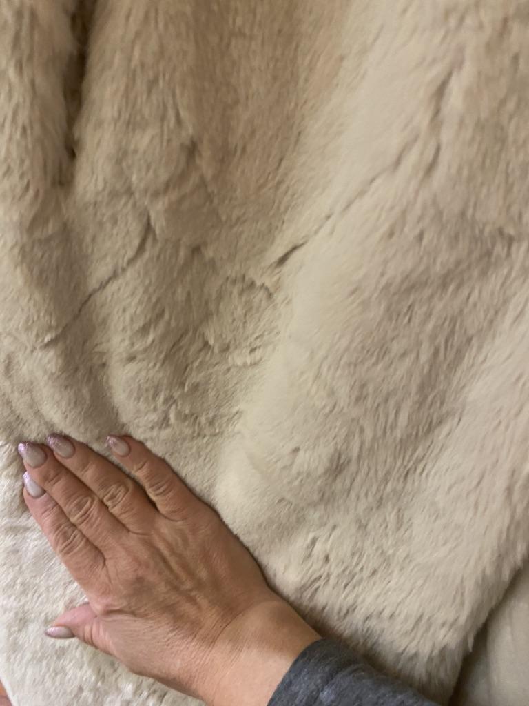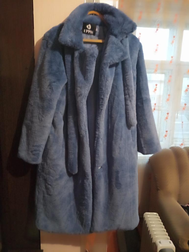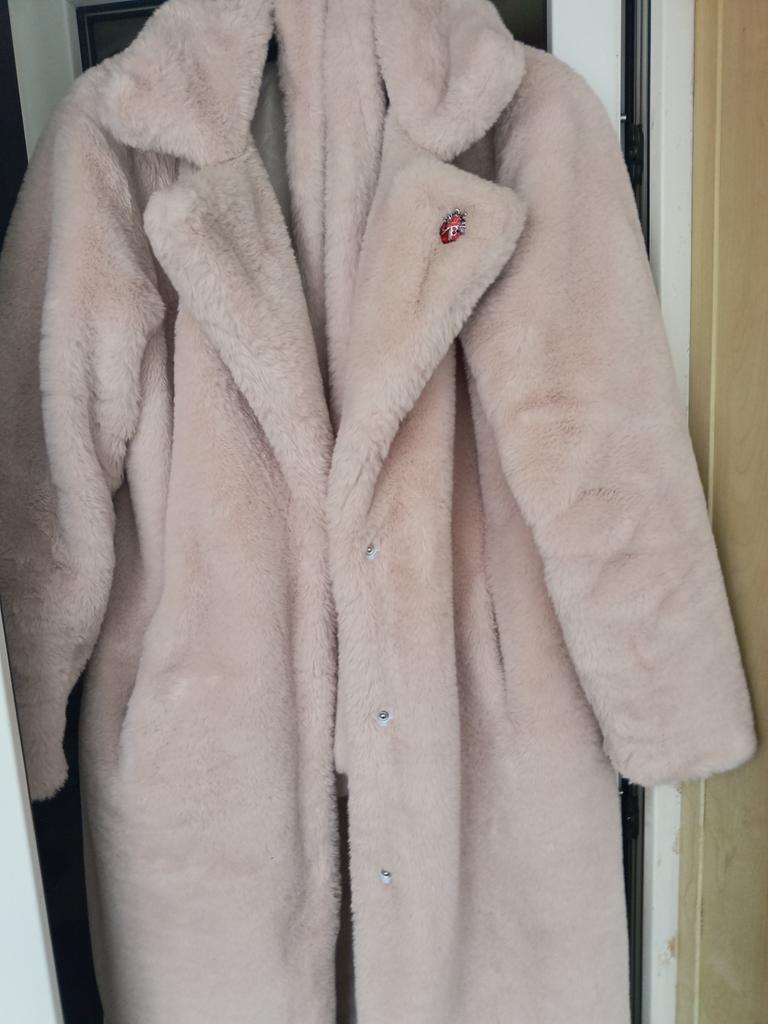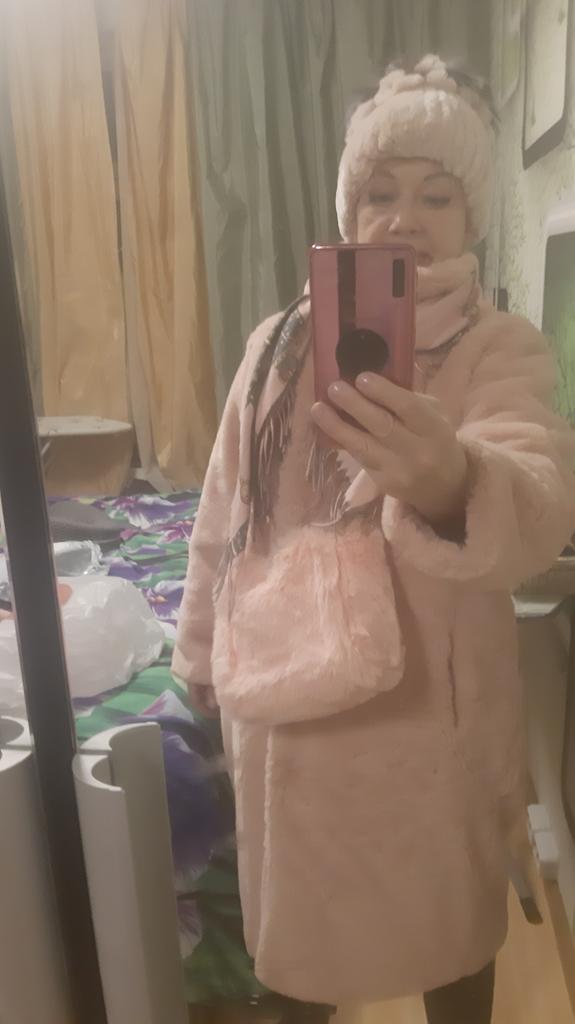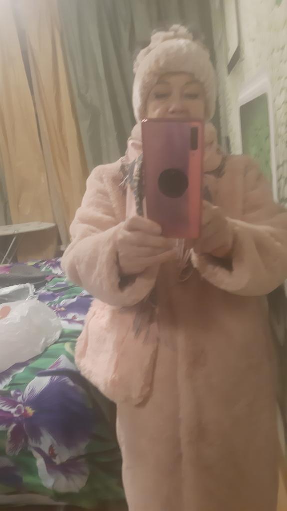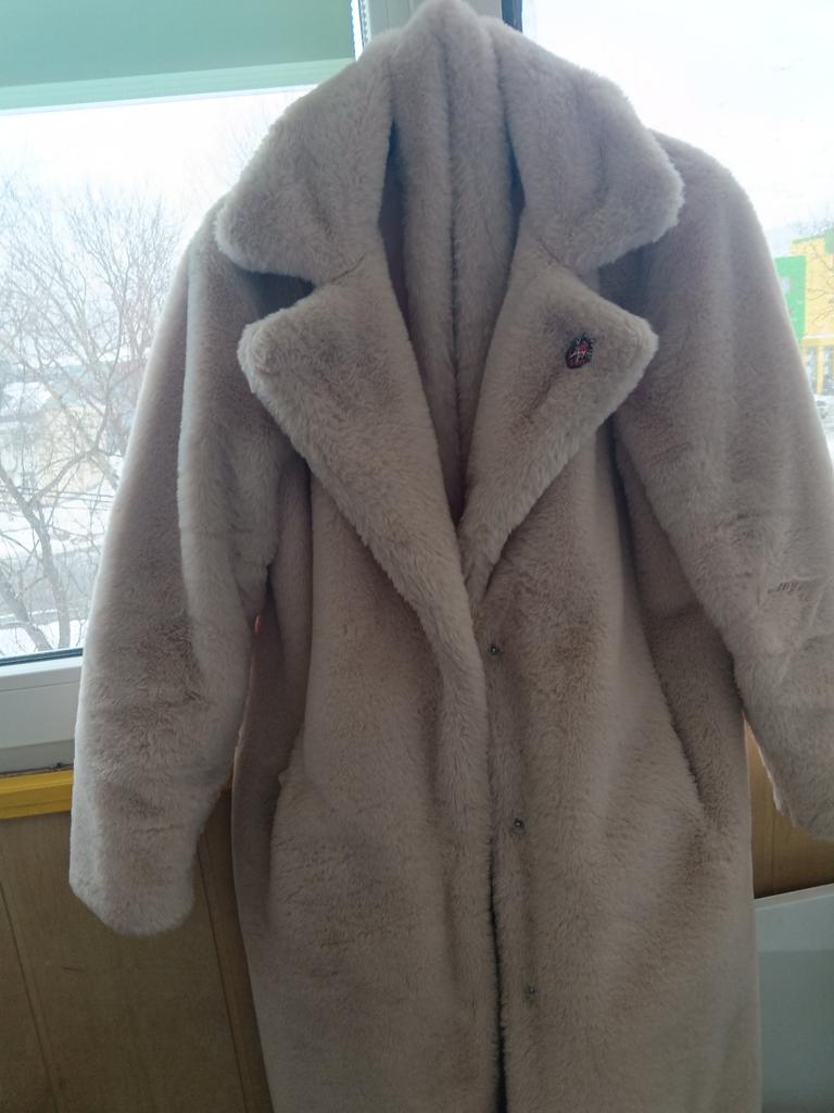 Not a fur coat, but a beauty!!! There are buttons, there is a belt, pockets Long, your legs will be warm Very pleasant to the touch Although light, but very warm