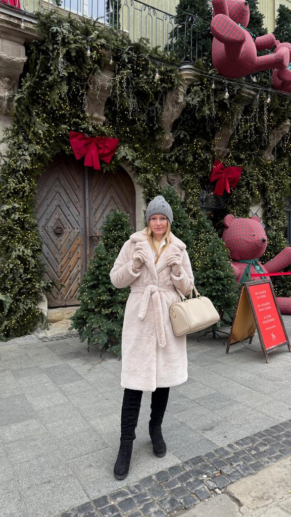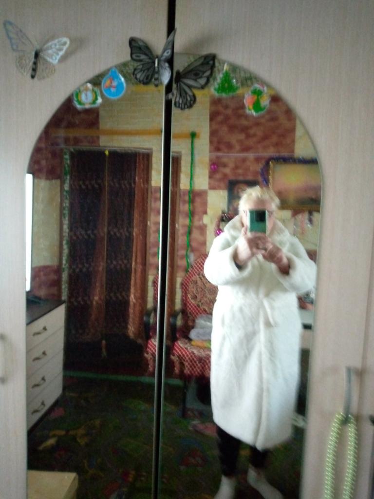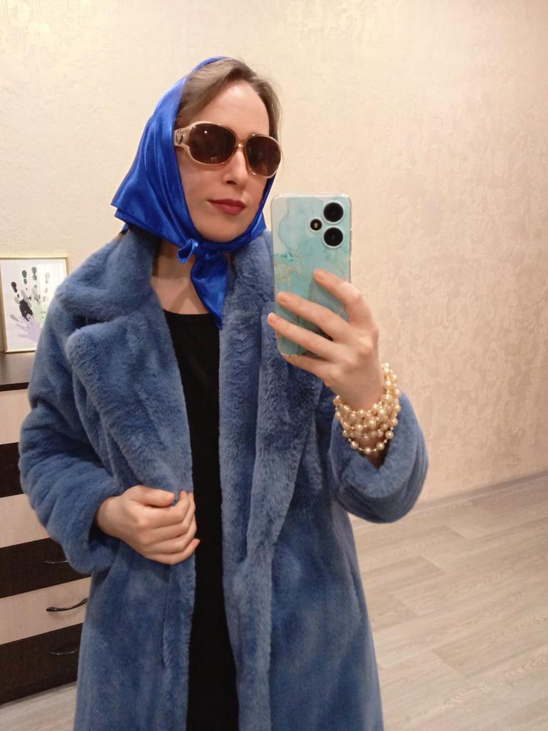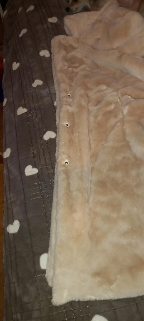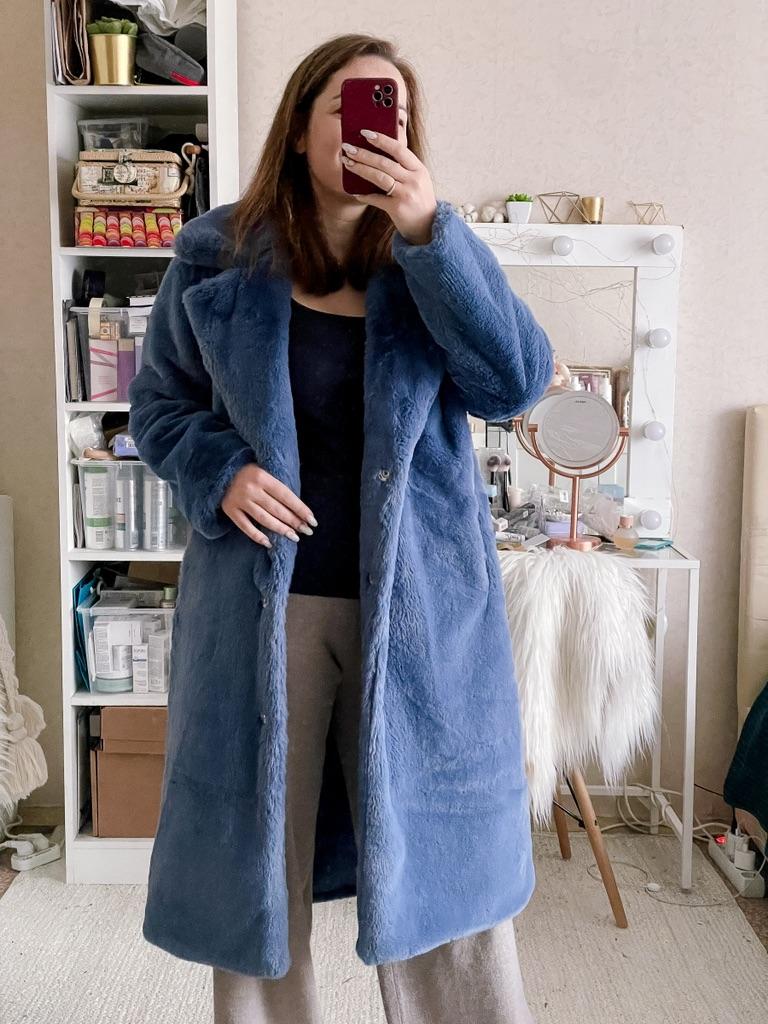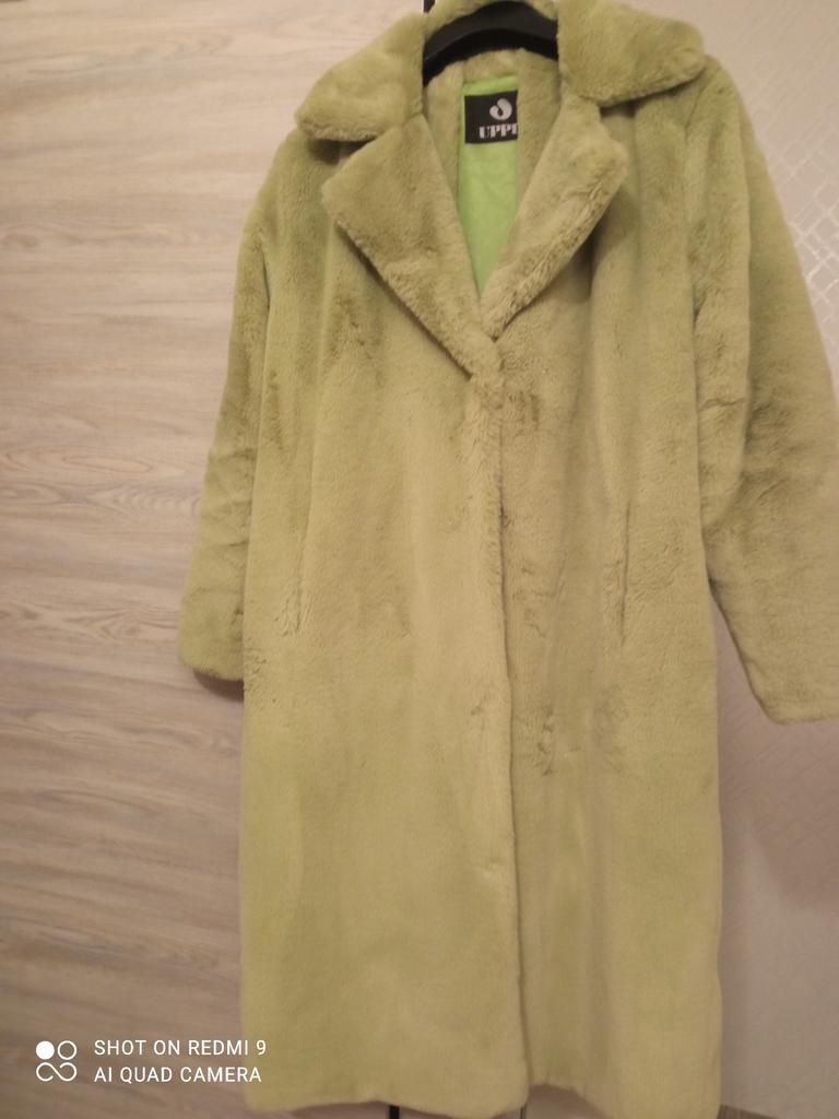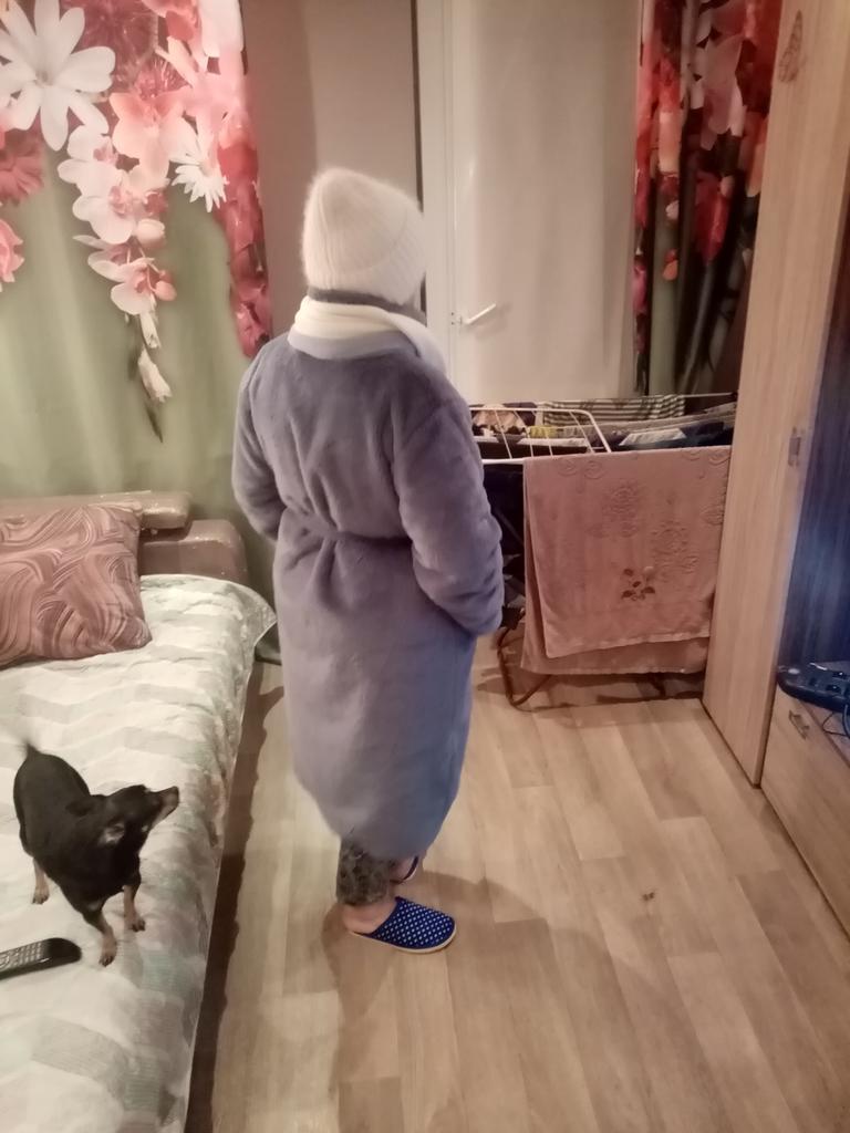 Not a fur coat, but a beauty!!! There are buttons, there is a belt, pockets Long, your legs will be warm Very pleasant to the touch Although light, but very warm