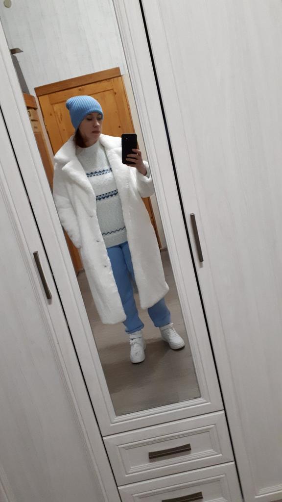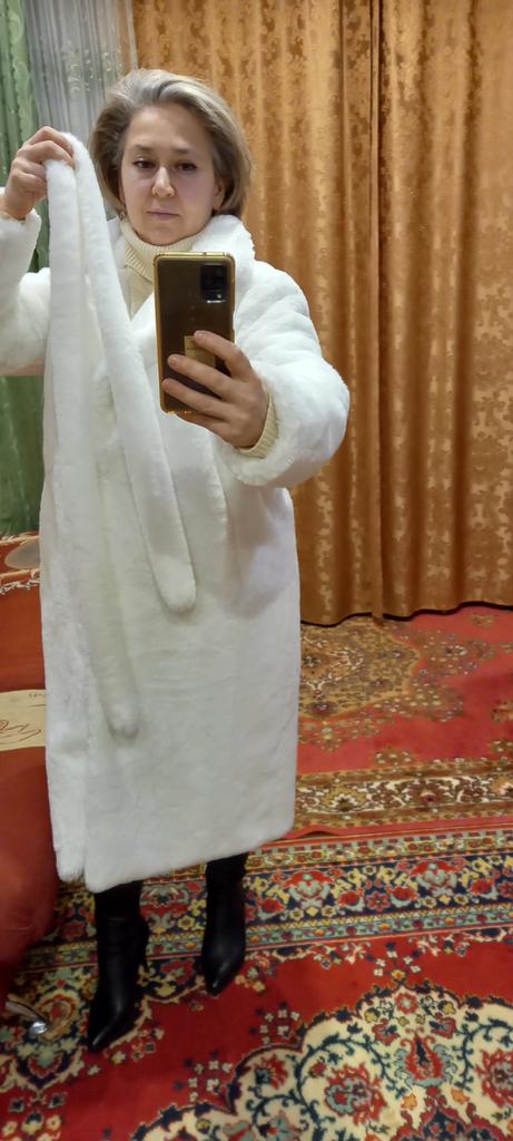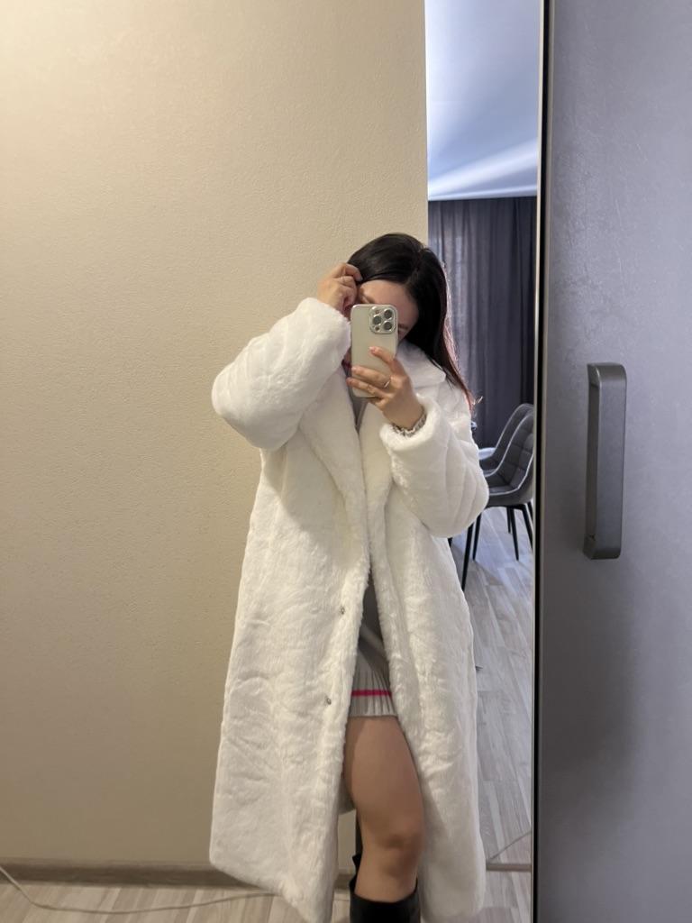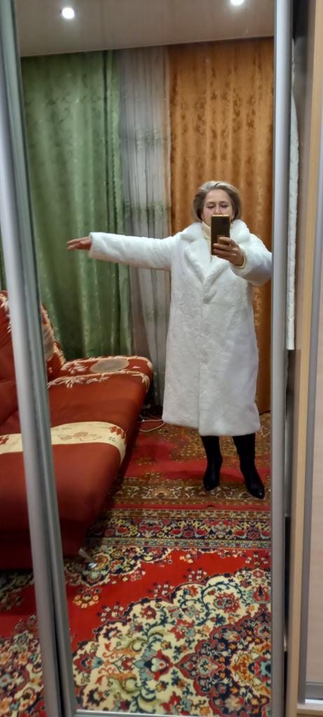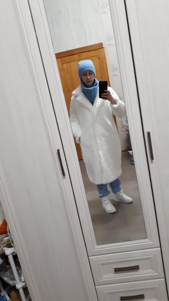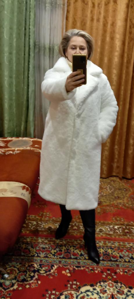 ☑️Perfect white color❤️ ☑️very beautiful fur coat - thick and high quality 👏 ☑️Warm - I wear it every other day at a temperature of -2 ☑️Easy to wash I recommend it 100%!