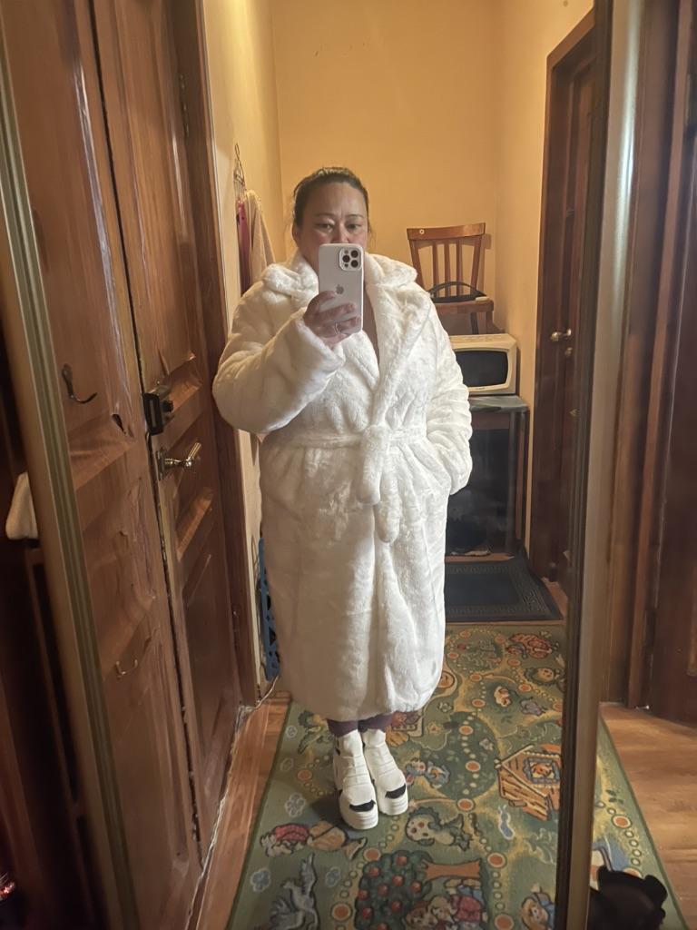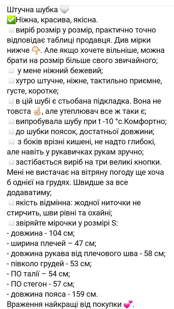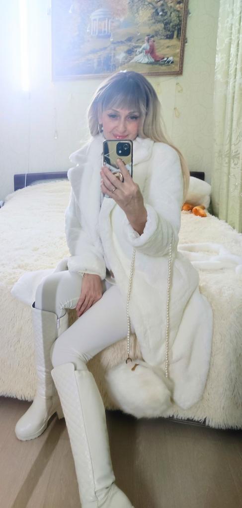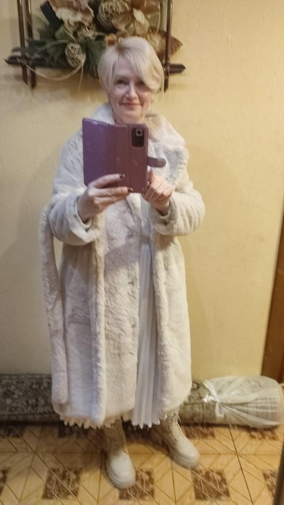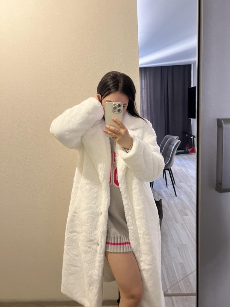 ☑️Perfect white color❤️ ☑️very beautiful fur coat - thick and high quality 👏 ☑️Warm - I wear it every other day at a temperature of -2 ☑️Easy to wash I recommend it 100%!