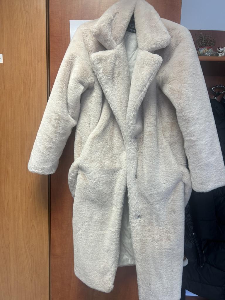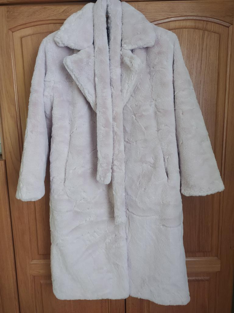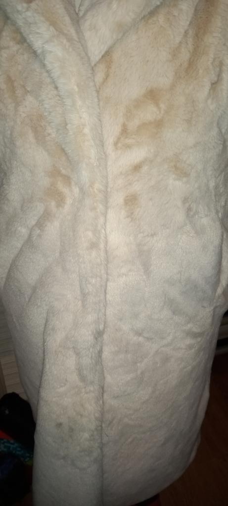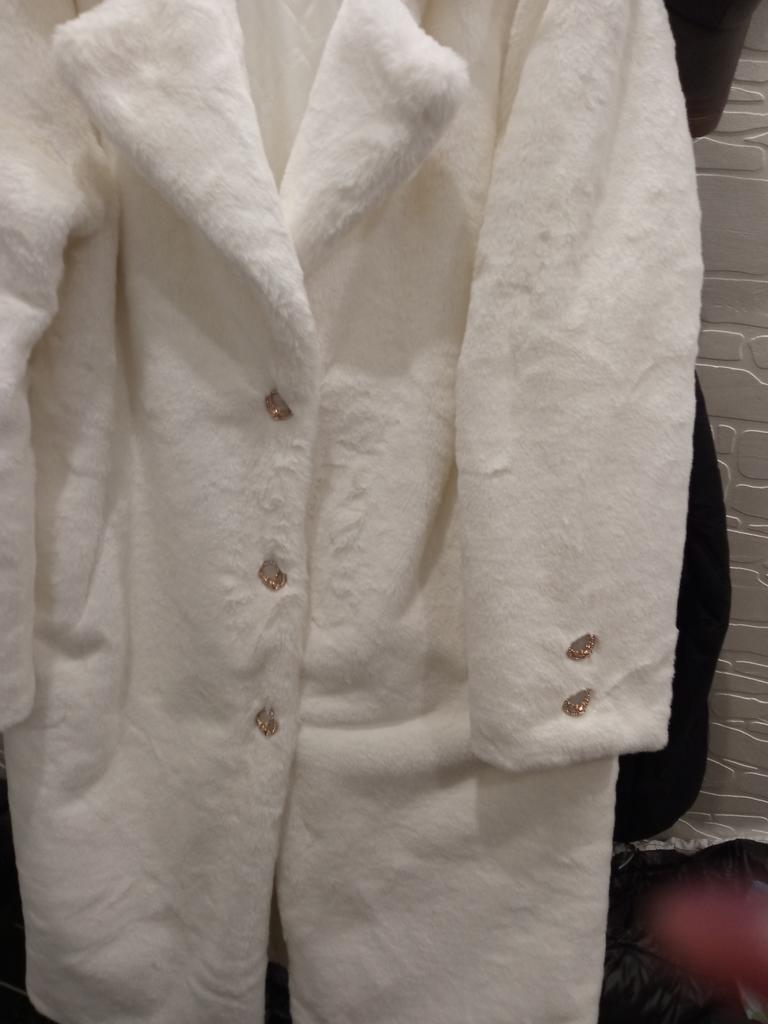 White faux fur coat. Sewn neatly, there are no defects. Size S is not too big on me because I'm size XS. The fur coat is snow-white, very soft. I was satisfied with the purchase 😌