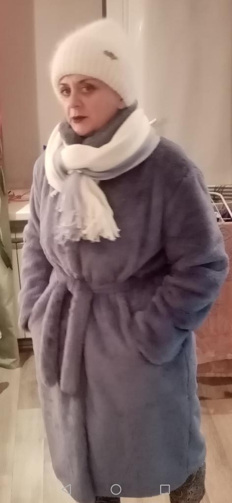 The fur coat is just lovely! Soft, beautiful, fits my 48-50 very well! I am delighted! I would also like to order it in brown or gray. I recommend buying it!