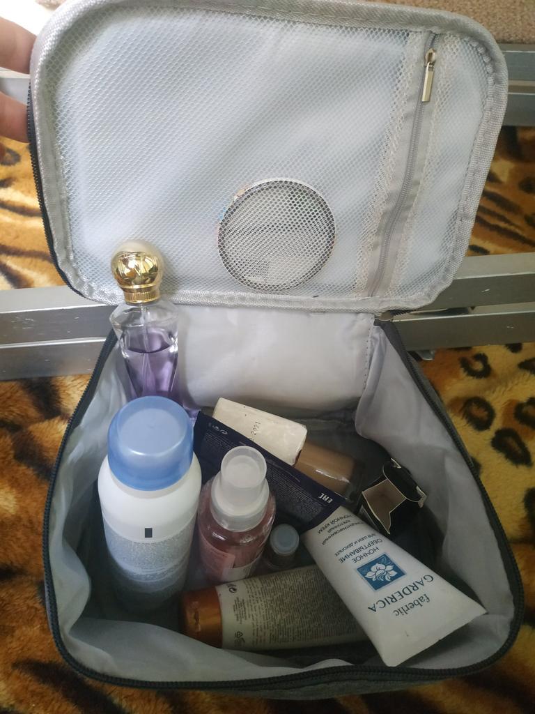 The cosmetic bag has an unpleasant smell, the zippers are thin and of poor quality, the material is good, sewn quite well
