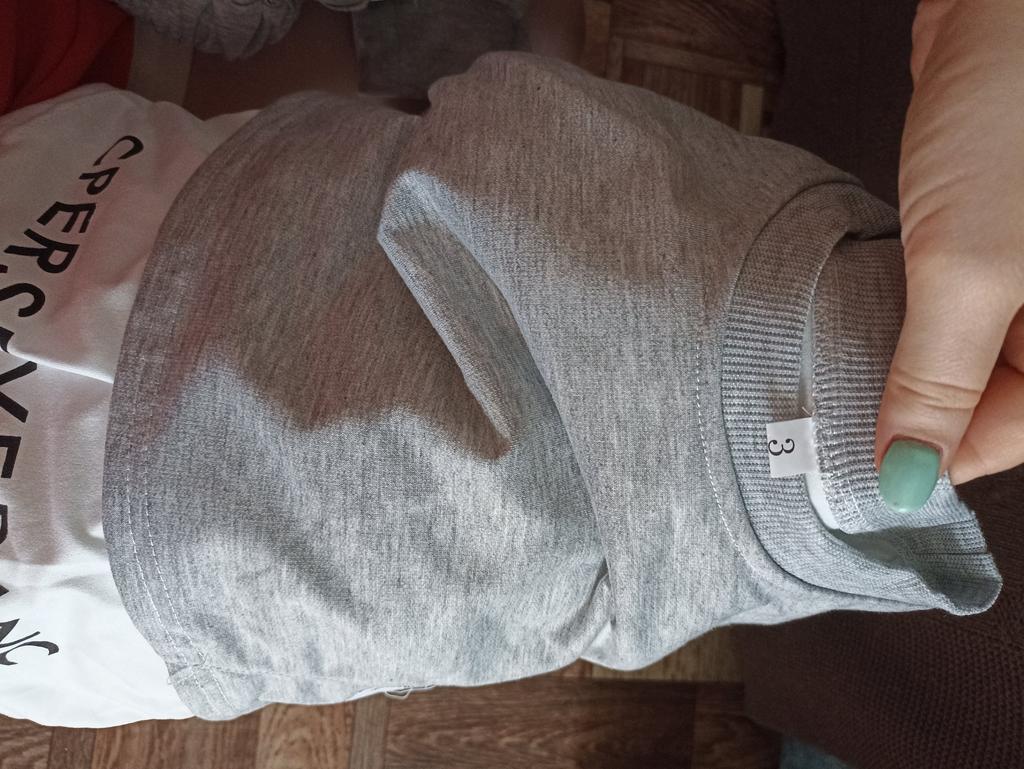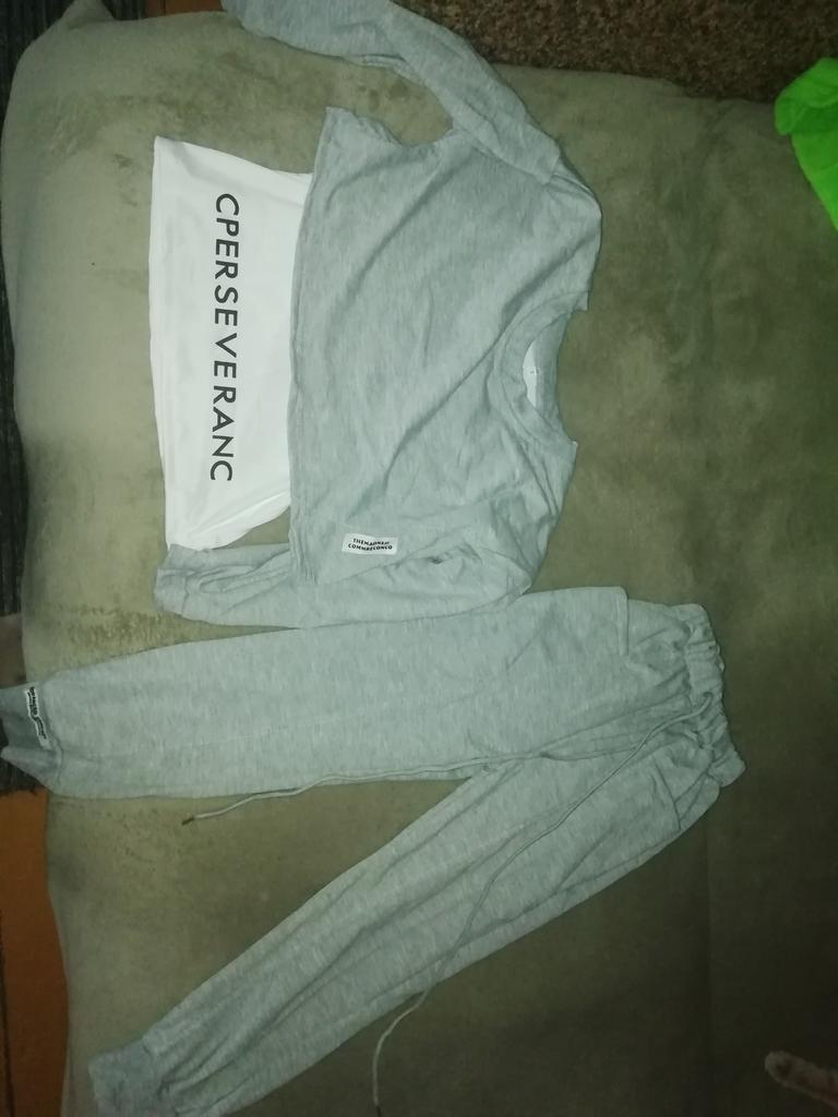 It looks better on the promo, the T-shirt is okay, it looks similar, the pants are like pajamas, and it seems like they are different sizes. Thin knitwear, silky.