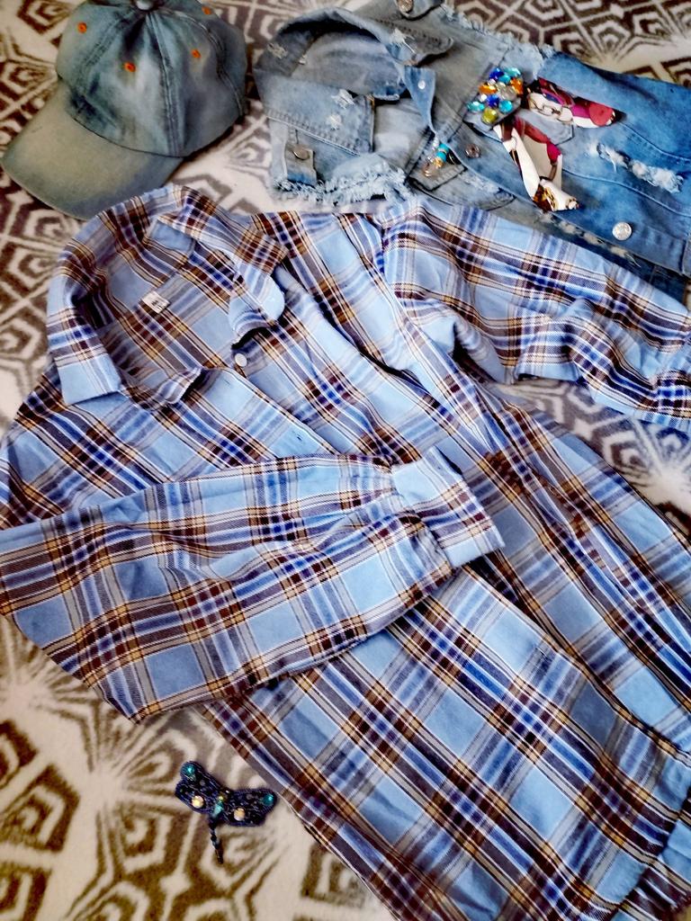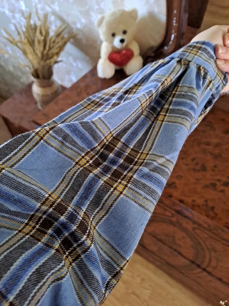 HOUZHOU Plaid Shirts Women Korean Fashion Oversized Casual Long Sleeve Cardigan Blue Blouse